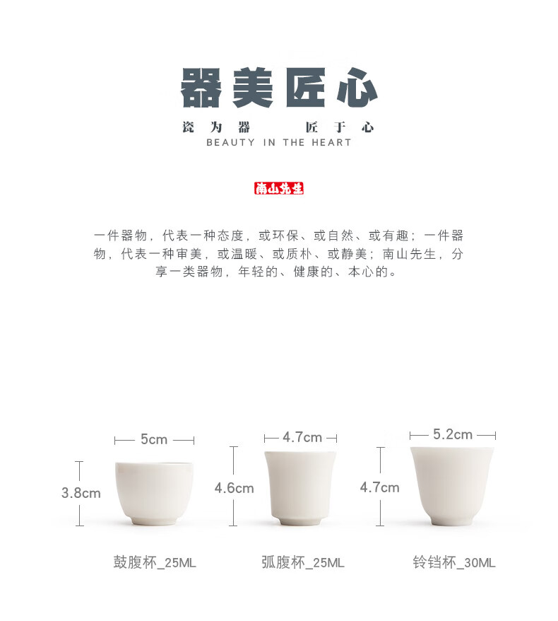 Mr. Nanshan original white tea cup for home drinking tea personal cup white porcelain tea cup ceramic master cup tea cup original white bell cup