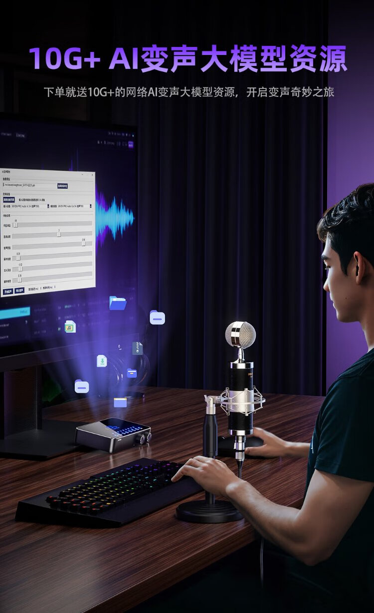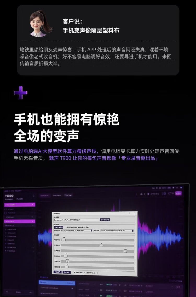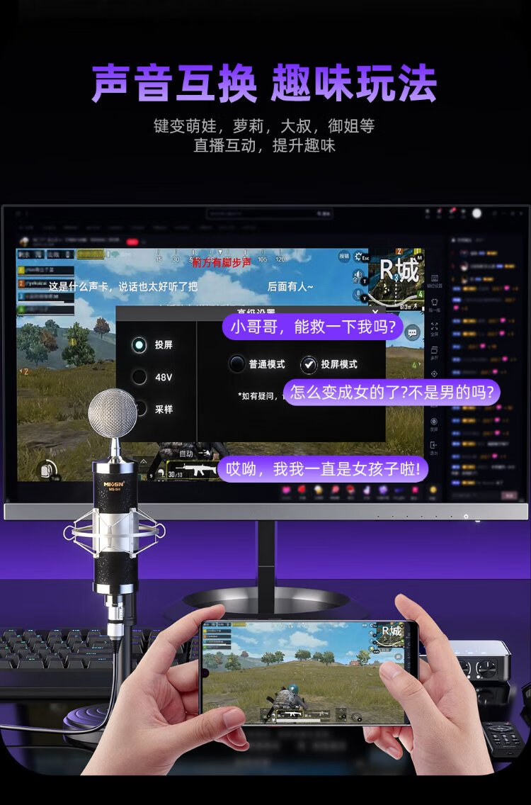 Meisheng AI voice changer computer real-time real-time male-to-female phone call game professional live sound card recording dubbing anchor special voice changer T9-5 black (AI voice changer universal for mobile phones and computers)