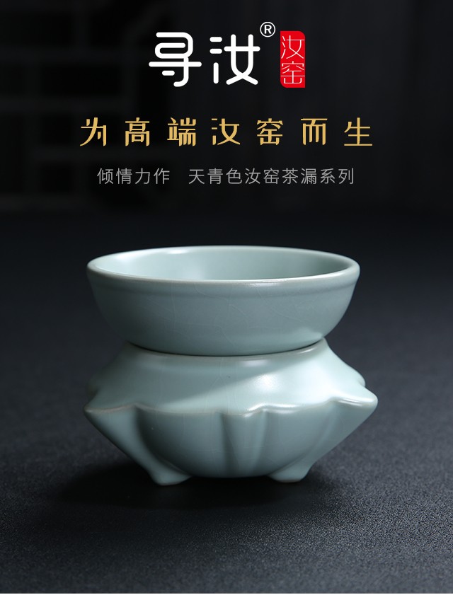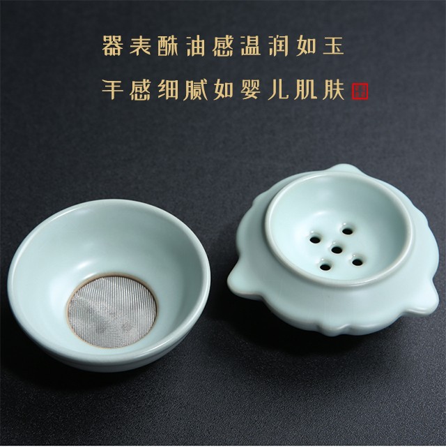 Xunru Ru kiln tea drain Kung Fu tea set accessories filter high-end ceramic tea ceremony tea filter tea residue mesh tea drain set Tianqing lotus tea drain set