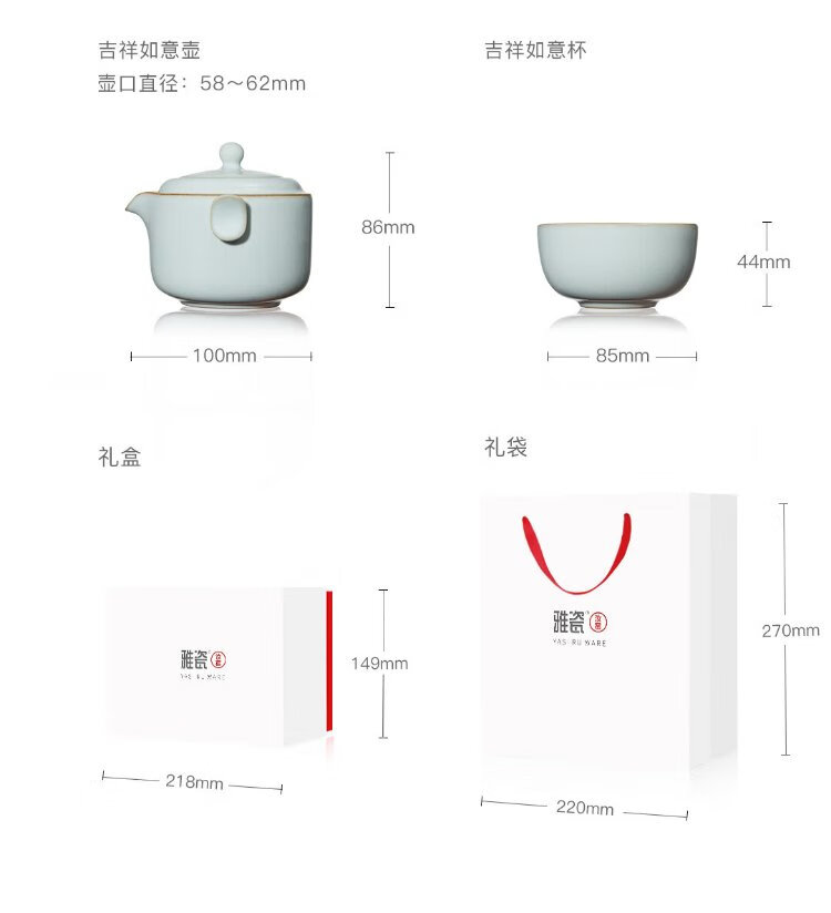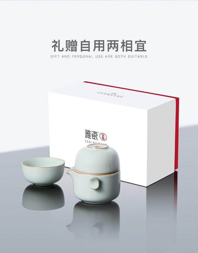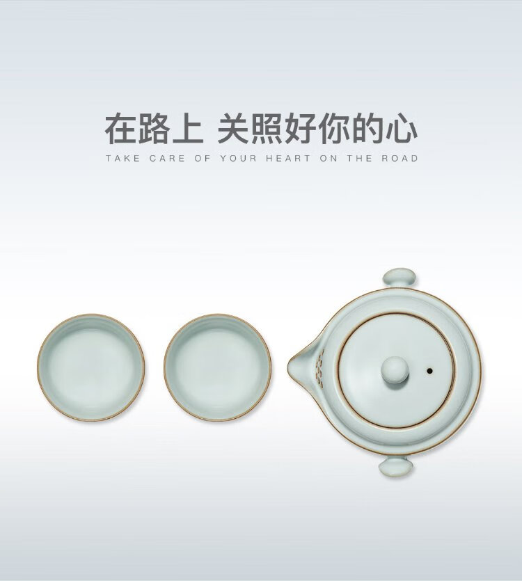 Yaci New Year Gift Ru Kiln Travel Tea Set Ceramic Quick Cup One Pot Two Cups Portable Cloth Bag Tea Table Lucky Ru Kiln Lucky Set + Cloth Bag One Pot Two Cups