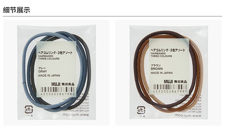 MUJI rubber hair band 3 colors mixed F9S6005 hair rope colorful headband leather case brown