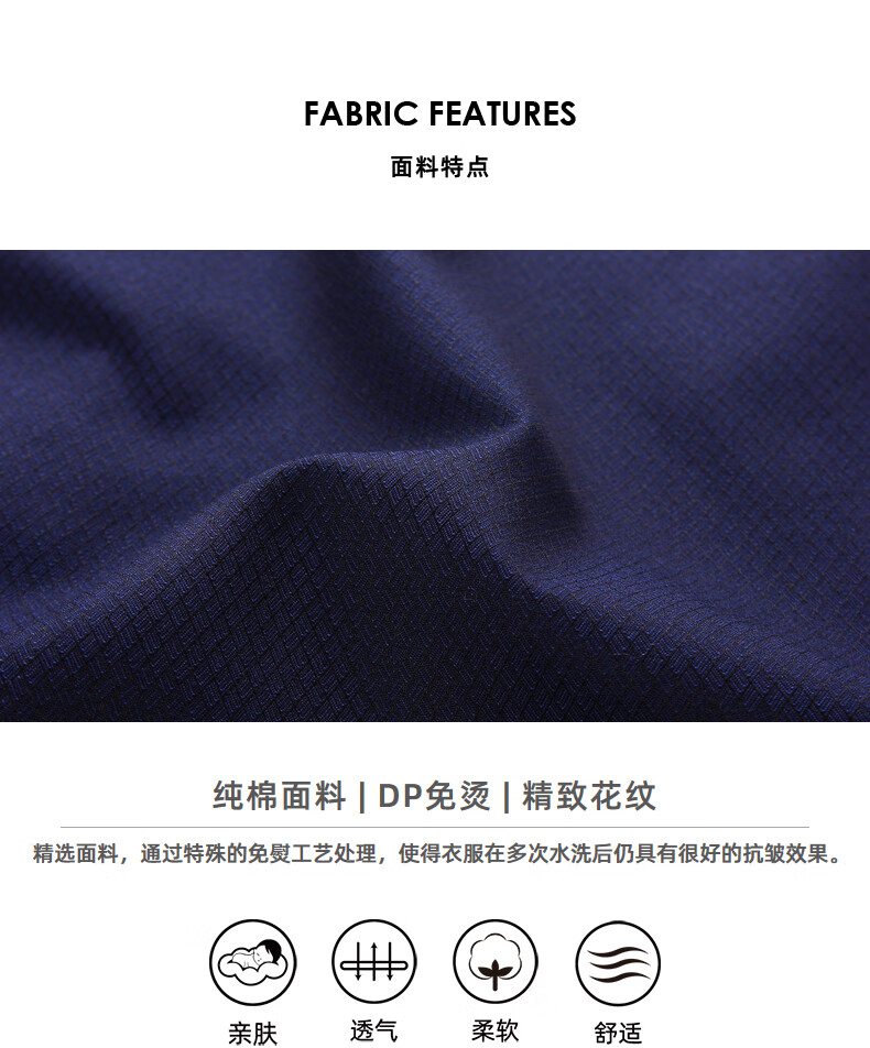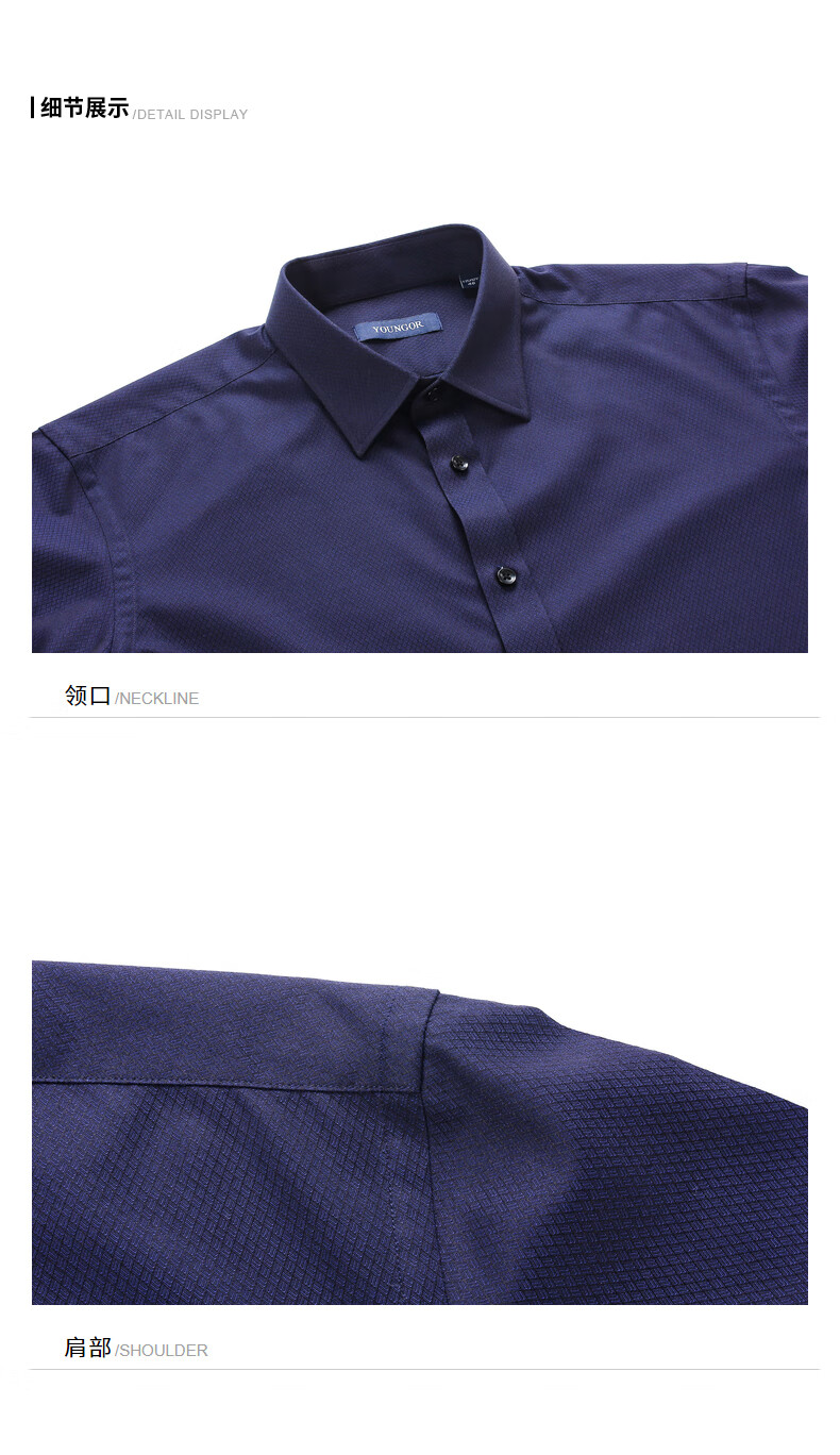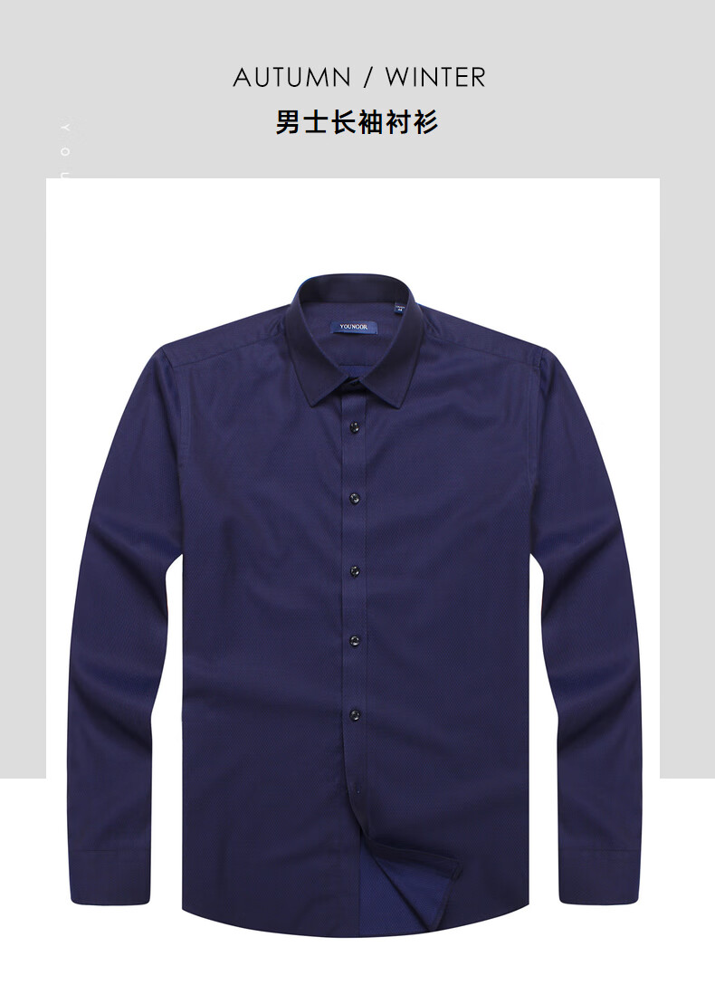 YOUNGOR long-sleeved shirt men's solid color jacquard DP no-iron shirt pure cotton fabric anti-wrinkle, flat and easy to care for GLDP16388FJA dark blue jacquard 39