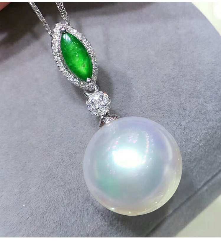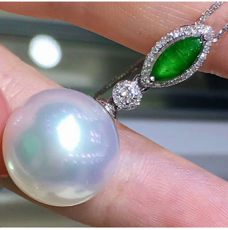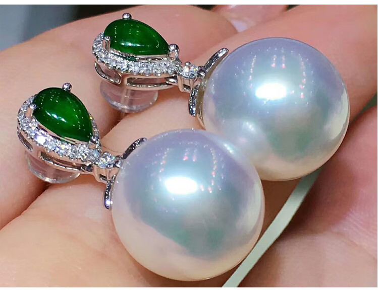 Mohs Australian South Sea white bead jewelry set, seawater pearl earrings, pendant, three-piece set, 18K gold, diamond, emerald, retro, elegant, custom style, shipped in 7-10 days, South Sea white bead earrings, 11-12mm
