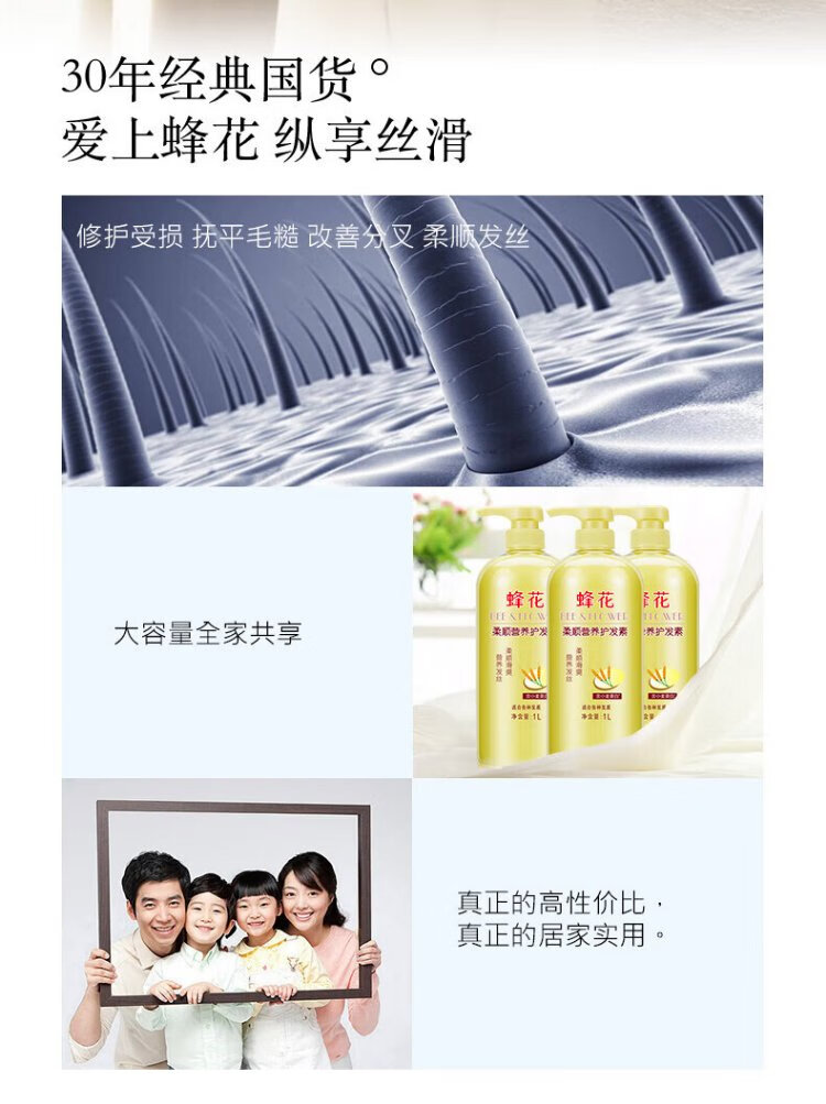 Bee Flower Conditioner Set Smooth and Nutritious Wheat Protein 1L*3+Ginger Hair Care 100mlx2