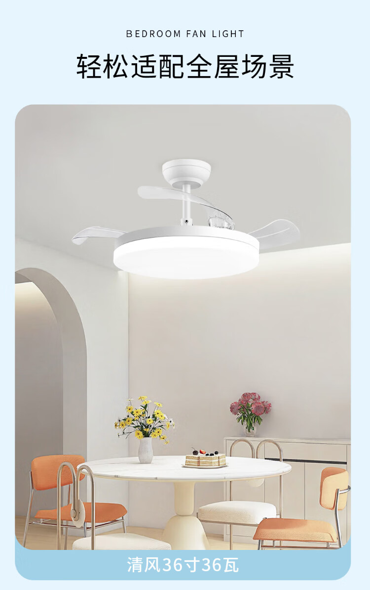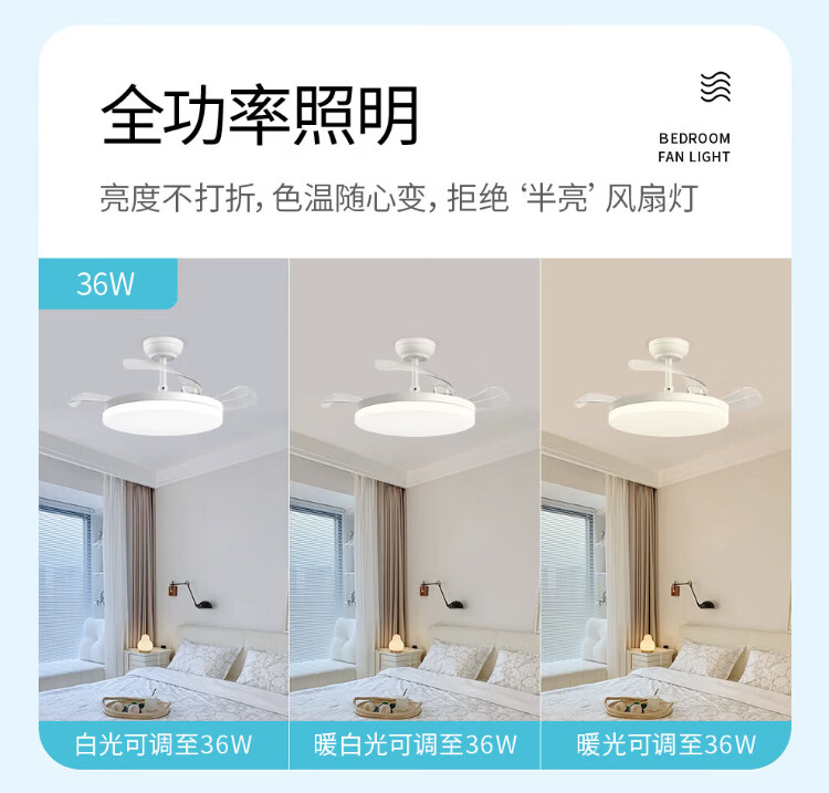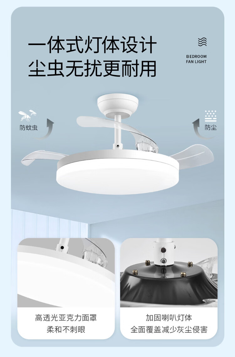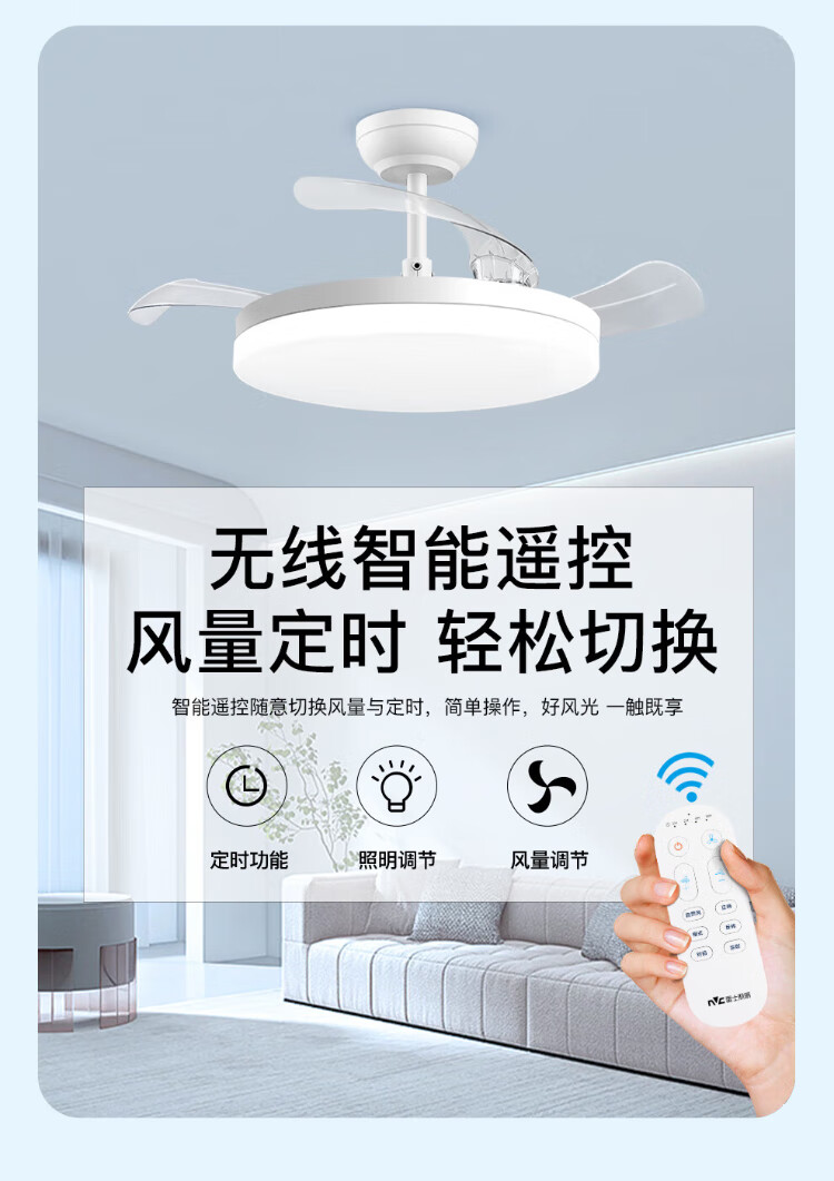 NVC fan light LED ceiling fan light invisible fan modern simple frequency conversion dining room bedroom living room remote control high color rendering lamp recommended! Qingfeng 36W/high CRI/IP40 protection