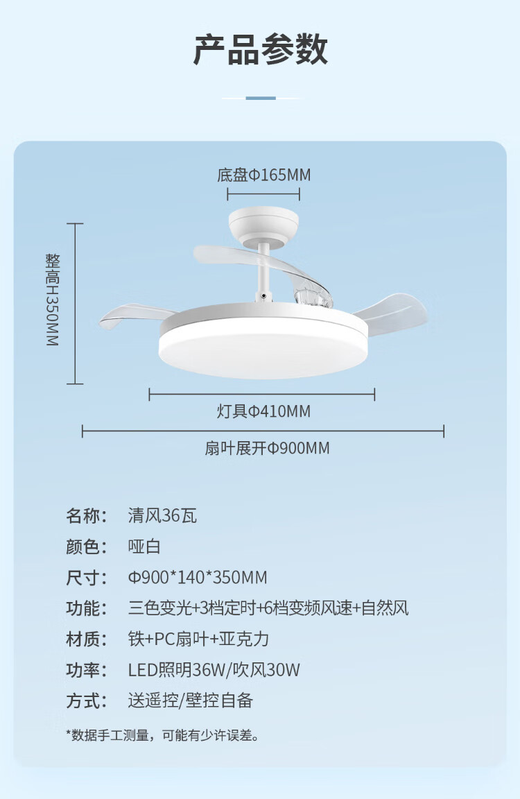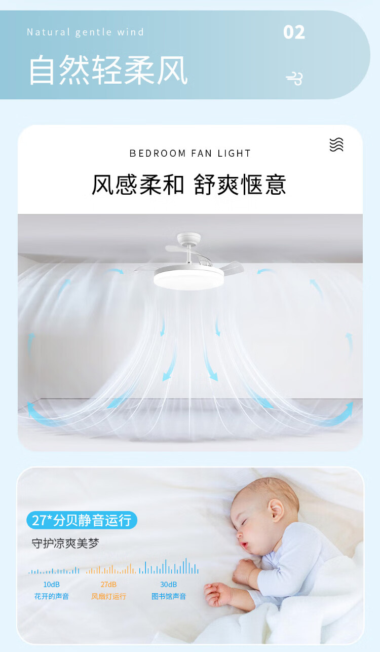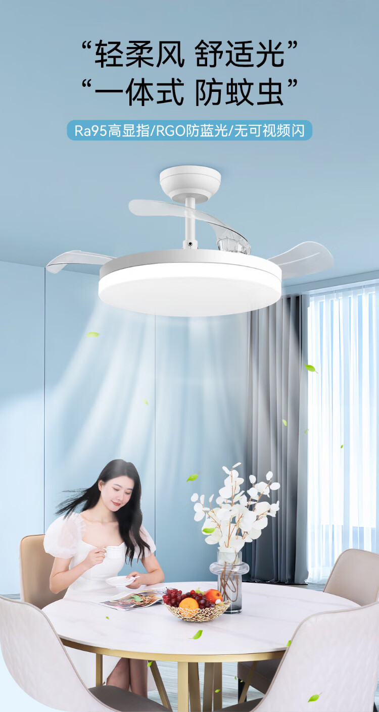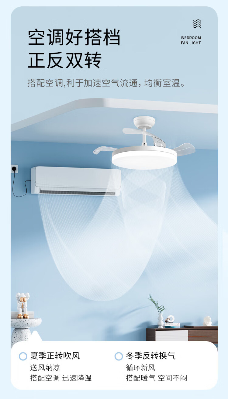 NVC fan light LED ceiling fan light invisible fan modern simple frequency conversion dining room bedroom living room remote control high color rendering lamp recommended! Qingfeng 36W/high CRI/IP40 protection