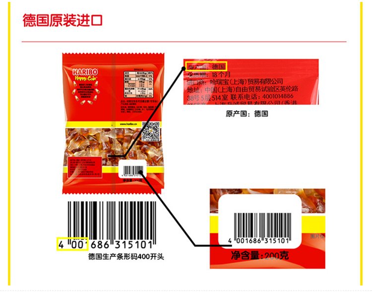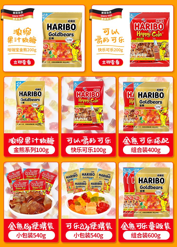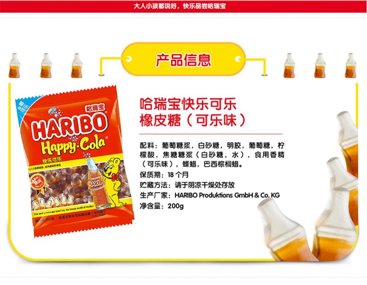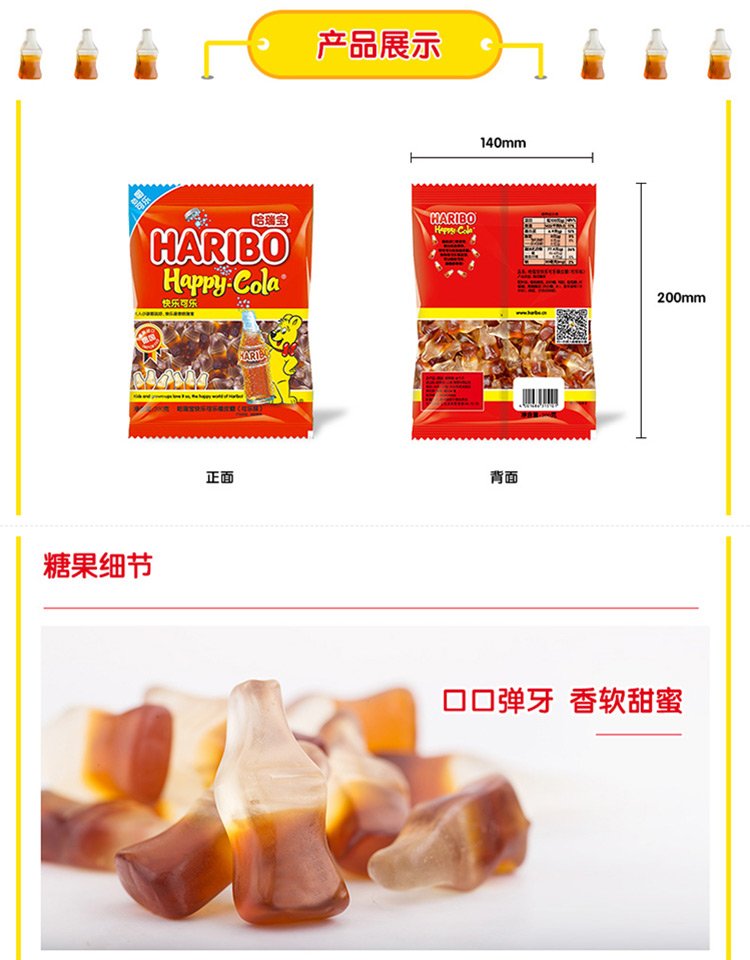 Haribo Türkiye imported Coca-Cola gummy candies 200g children's snacks QQ candy gummies
