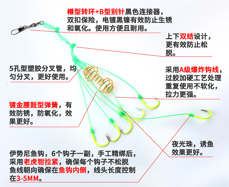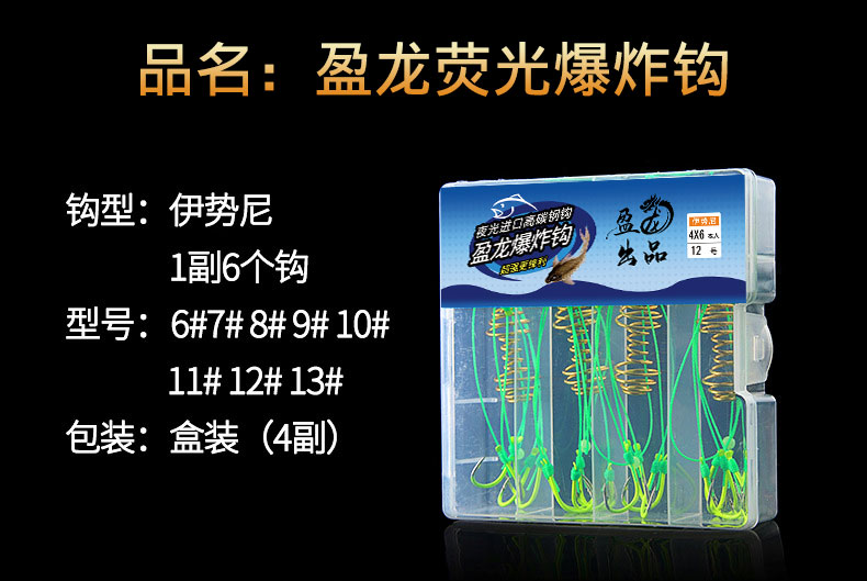Yinglong Explosive Hook Anti-hanging Bottom Fluorescent Fish Hook Iseni Spring Fishing Hook Barbed Set Sea Rod Throwing Rod Explosive Bait Fishing Gear Accessories Fishing Supplies Fluorescent Color Fluorescent Hook No. 7 (4 pieces in a box)