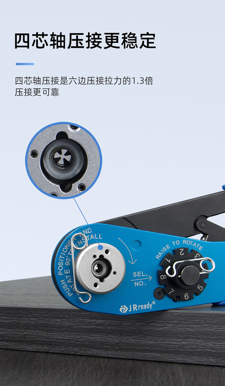 JRready M22520/2-01 aviation pin cold crimping pliers American standard electrical connector terminal four-core axis point crimping standard YJQ-W1A+SK2/2 positioner