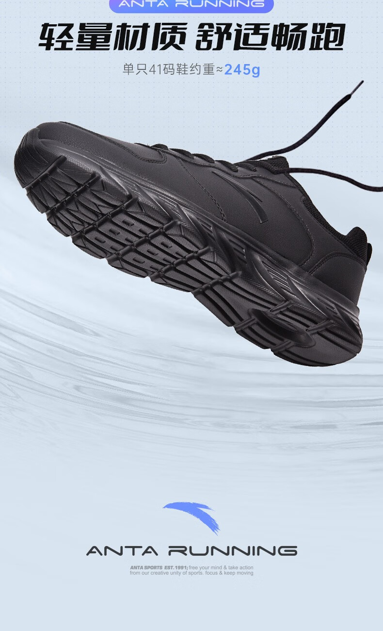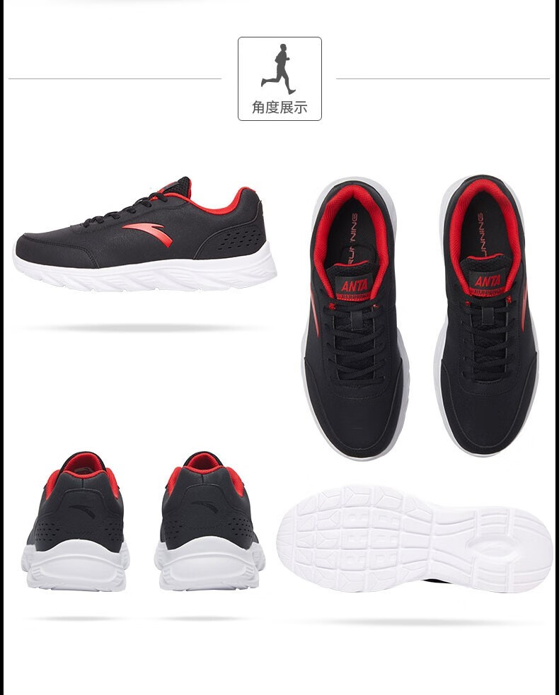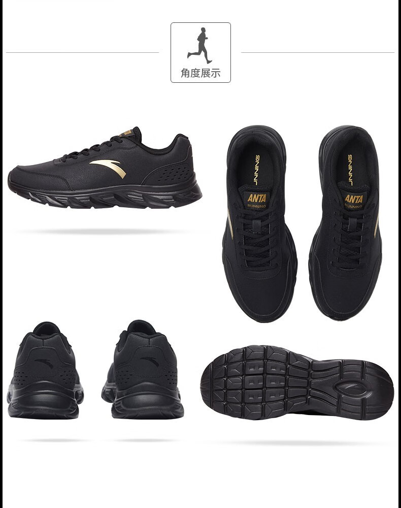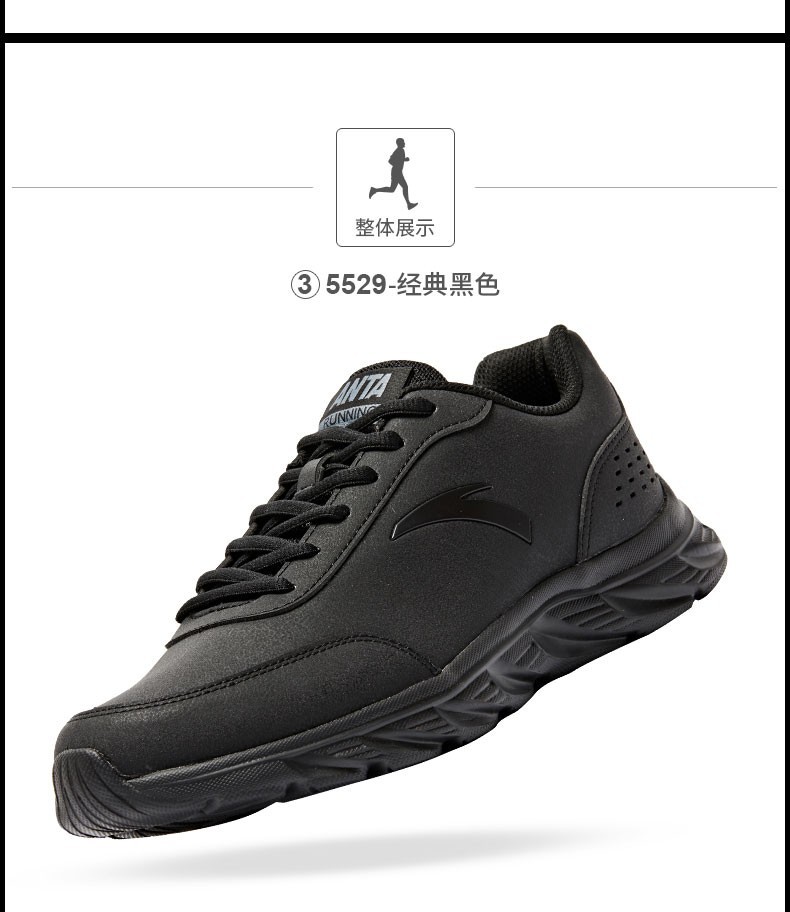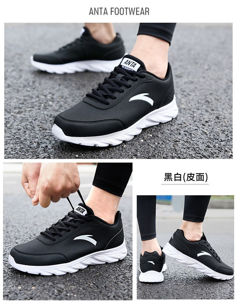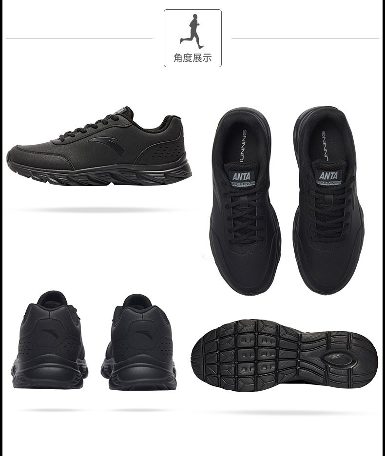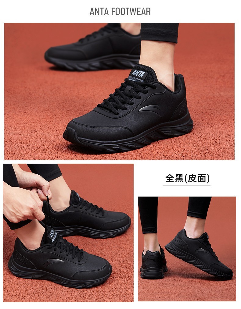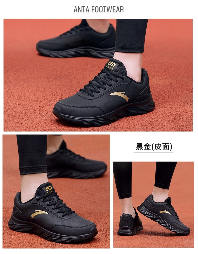 ANTA Men's Shoes Sports Shoes for Men Autumn and Winter Soft Sole Wear-Resistant Water-Repellent Leather Running Shoes Shock-Absorbing Outdoor Casual Shoes for Men Recommended Style-Water-Repellent Leather 5529-6 Black 42 (260mm)