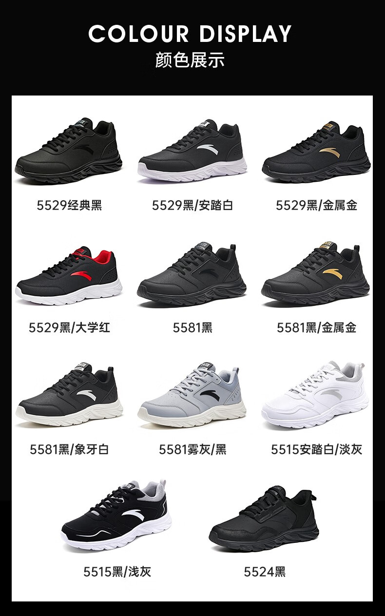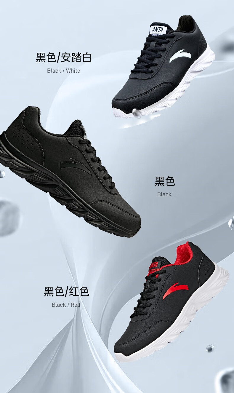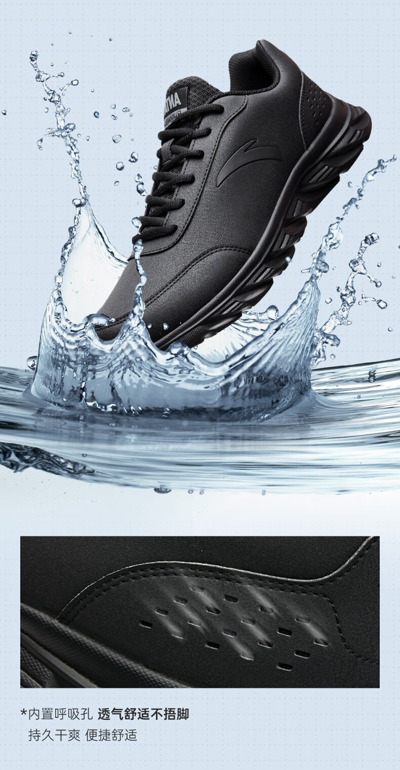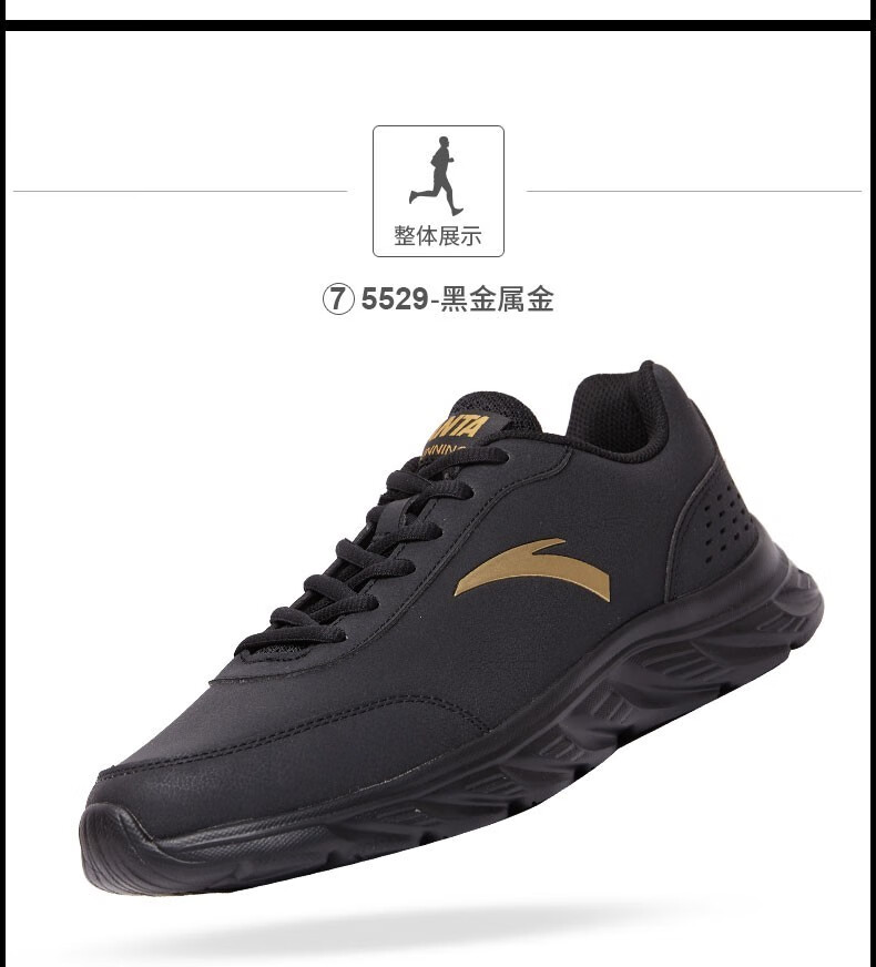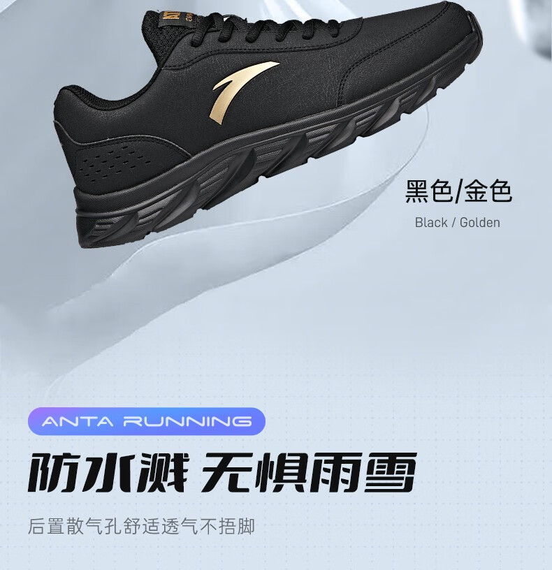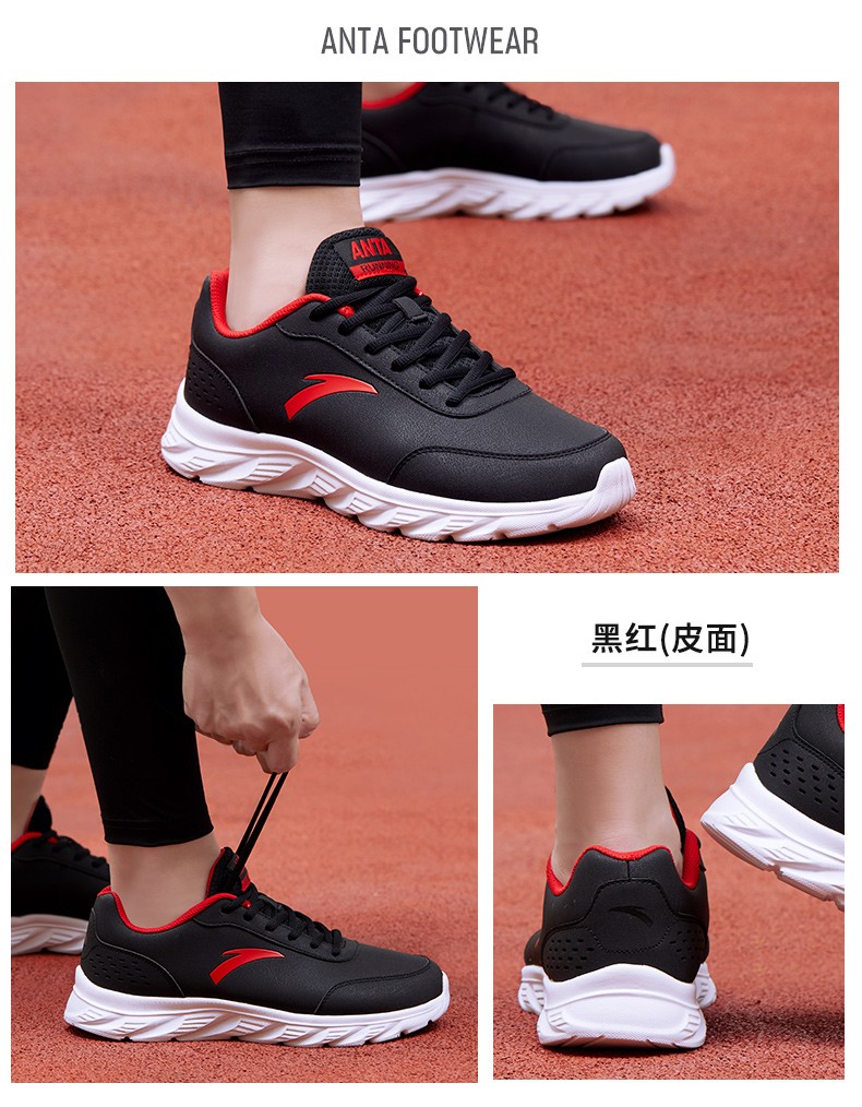 ANTA Men's Shoes Sports Shoes for Men Autumn and Winter Soft Sole Wear-Resistant Water-Repellent Leather Running Shoes Shock-Absorbing Outdoor Casual Shoes for Men Recommended Style-Water-Repellent Leather 5529-6 Black 42 (260mm)