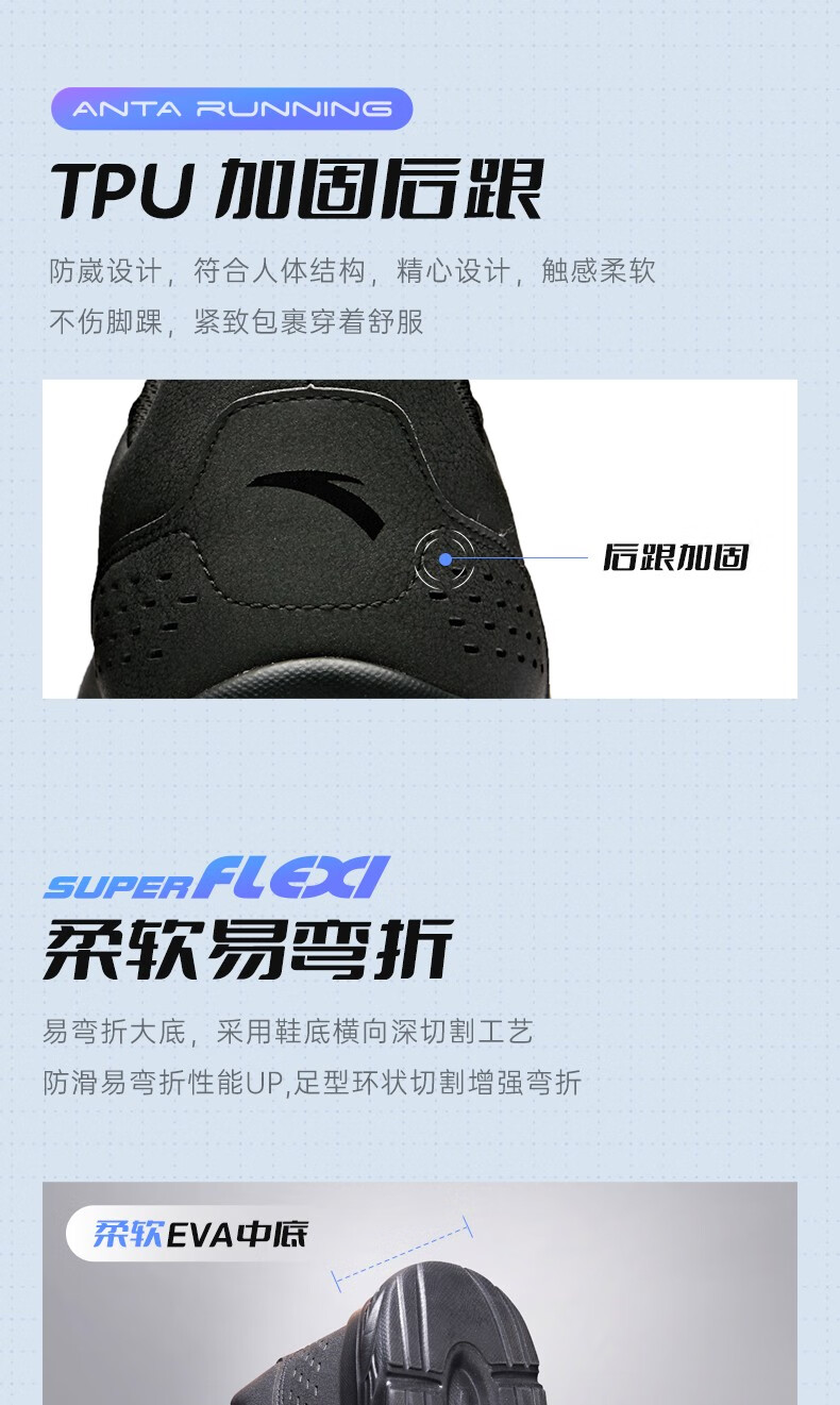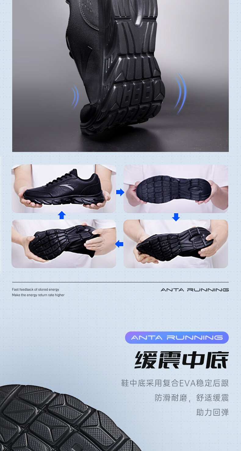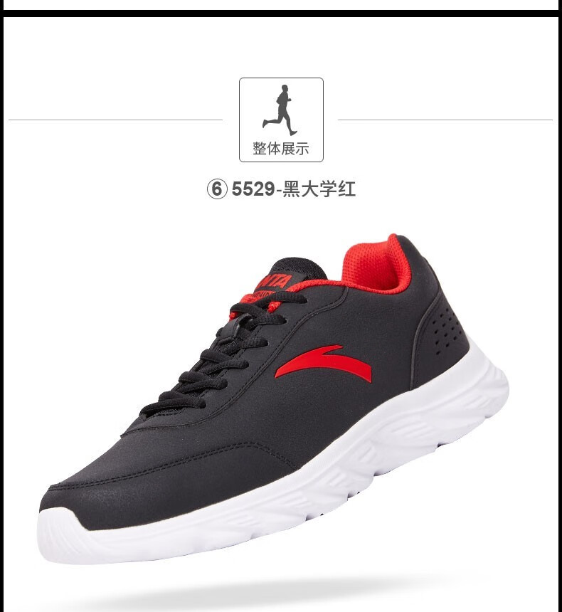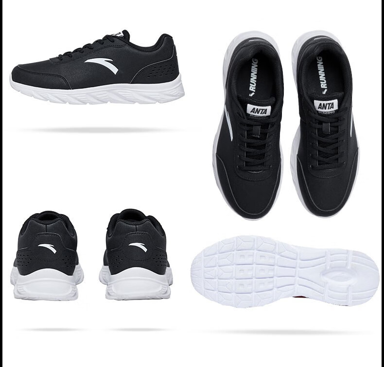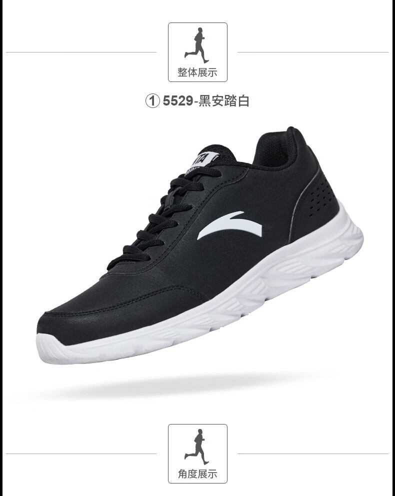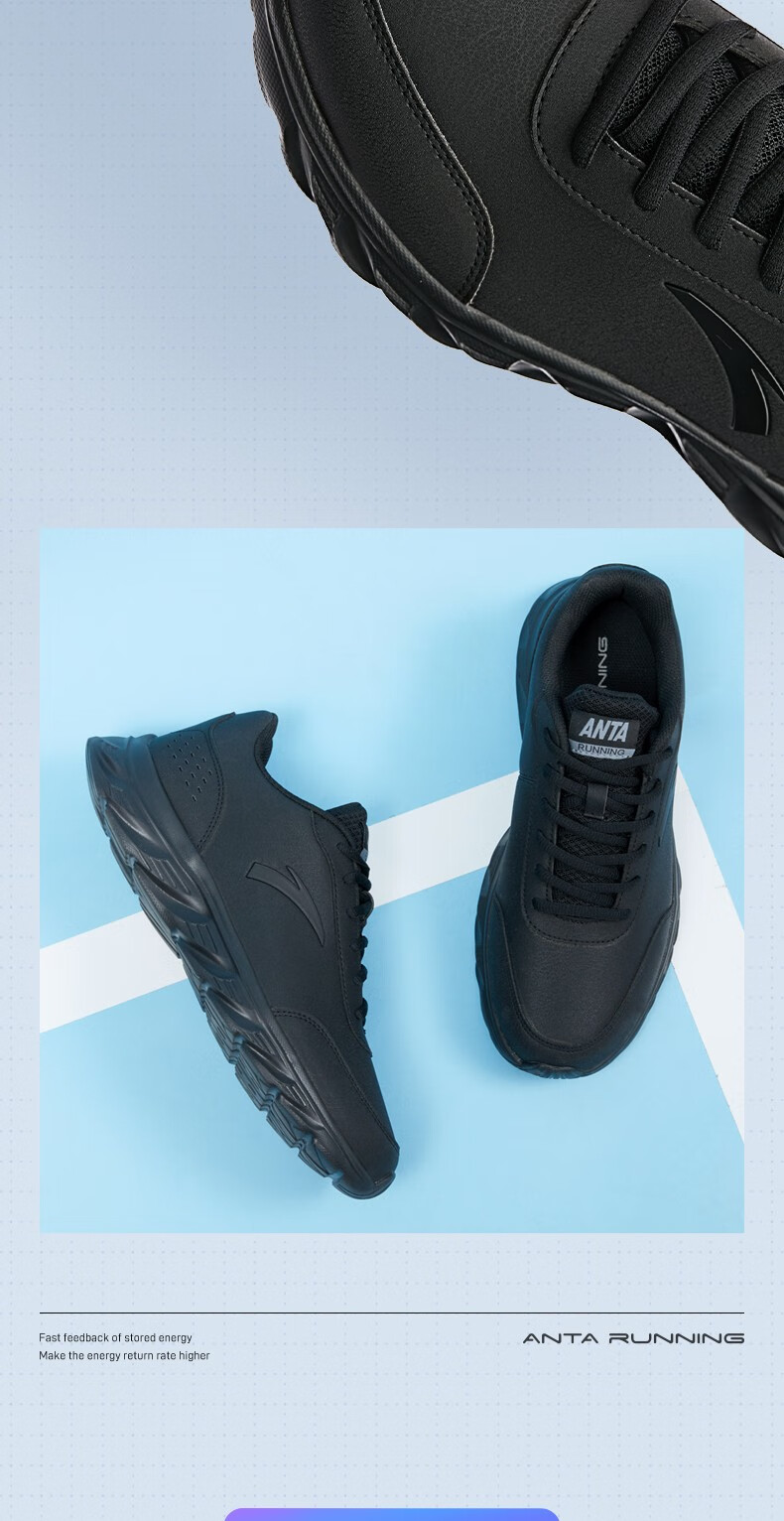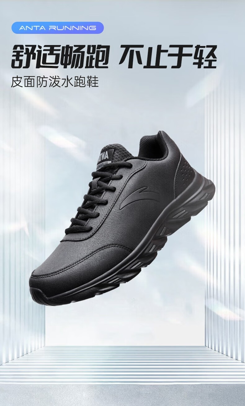 ANTA Men's Shoes Sports Shoes for Men Autumn and Winter Soft Sole Wear-Resistant Water-Repellent Leather Running Shoes Shock-Absorbing Outdoor Casual Shoes for Men Recommended Style-Water-Repellent Leather 5529-6 Black 42 (260mm)