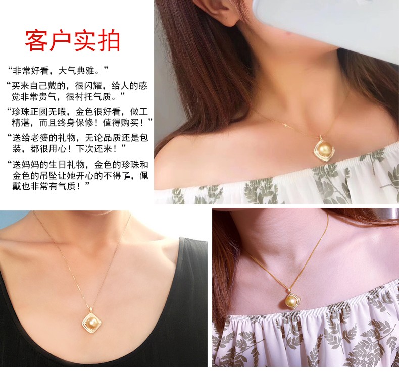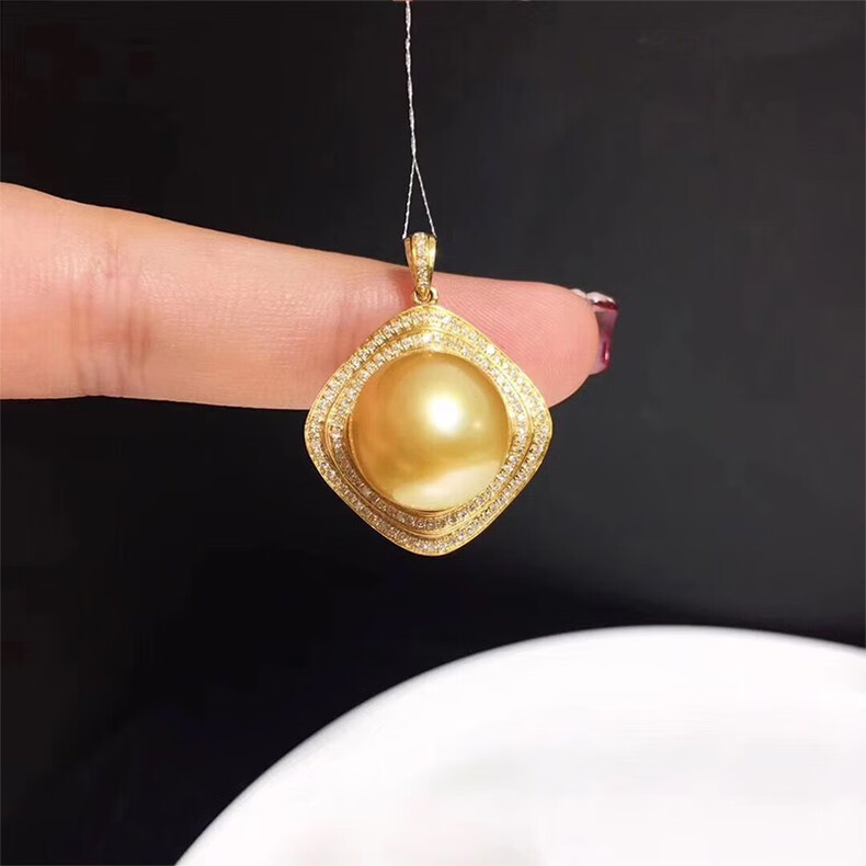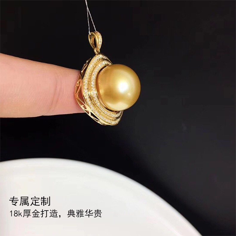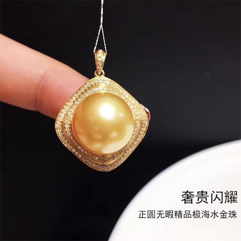TASINOR Jewelry South Sea Gold Bead Pendant Gold Seawater Pearl Necklace Flawless 18k Gold Set with Diamonds 12-13mm Gift Free 18k Gold Necklace + Gift Box + National Inspection Certificate 12-13mm
