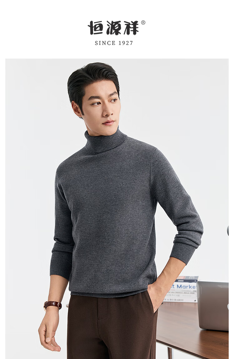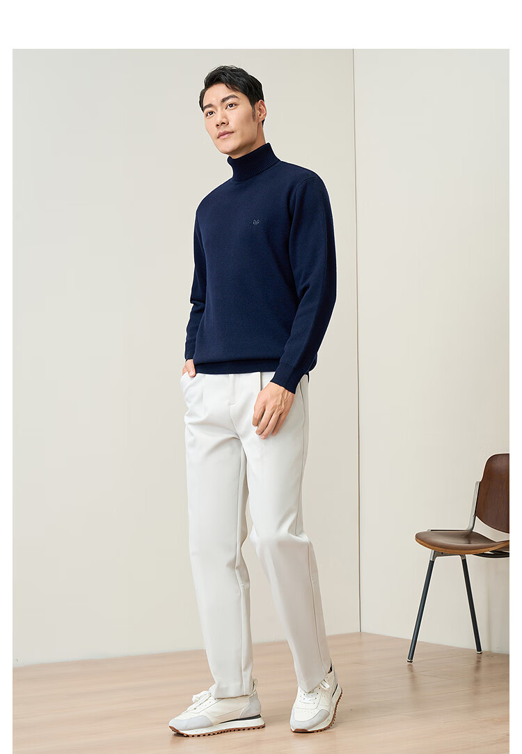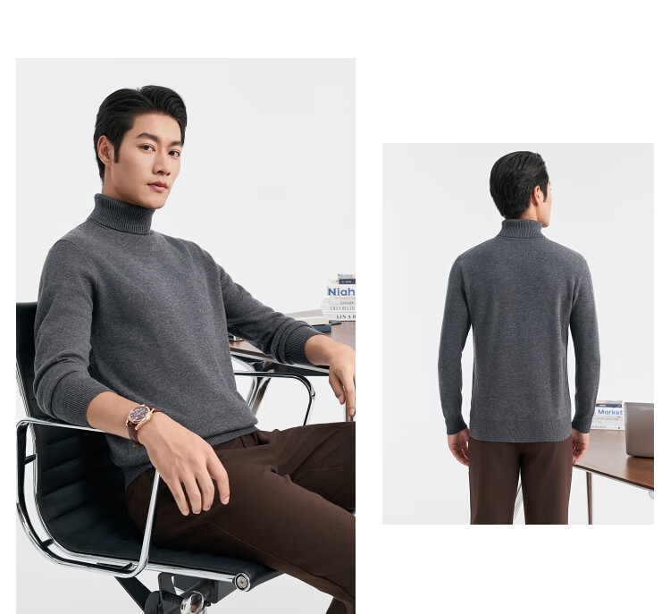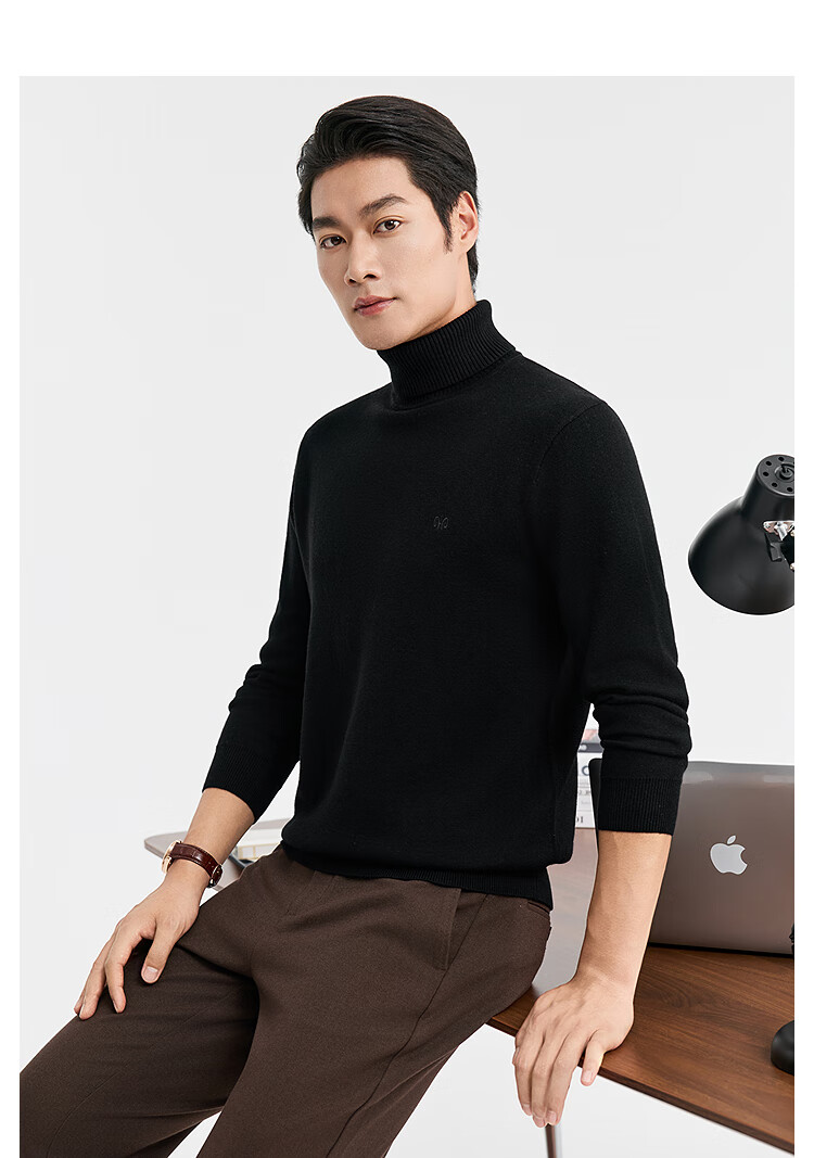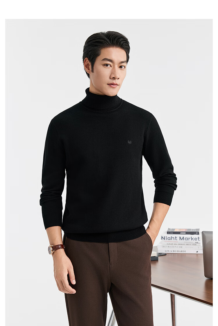 Hengyuanxiang turtleneck thickened wool sweater for middle-aged men with two lapels pure wool casual men's sweater warm solid color sweater for men black L/175/92A