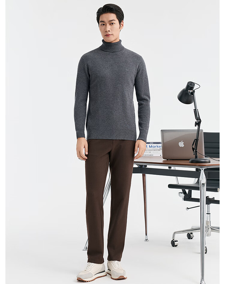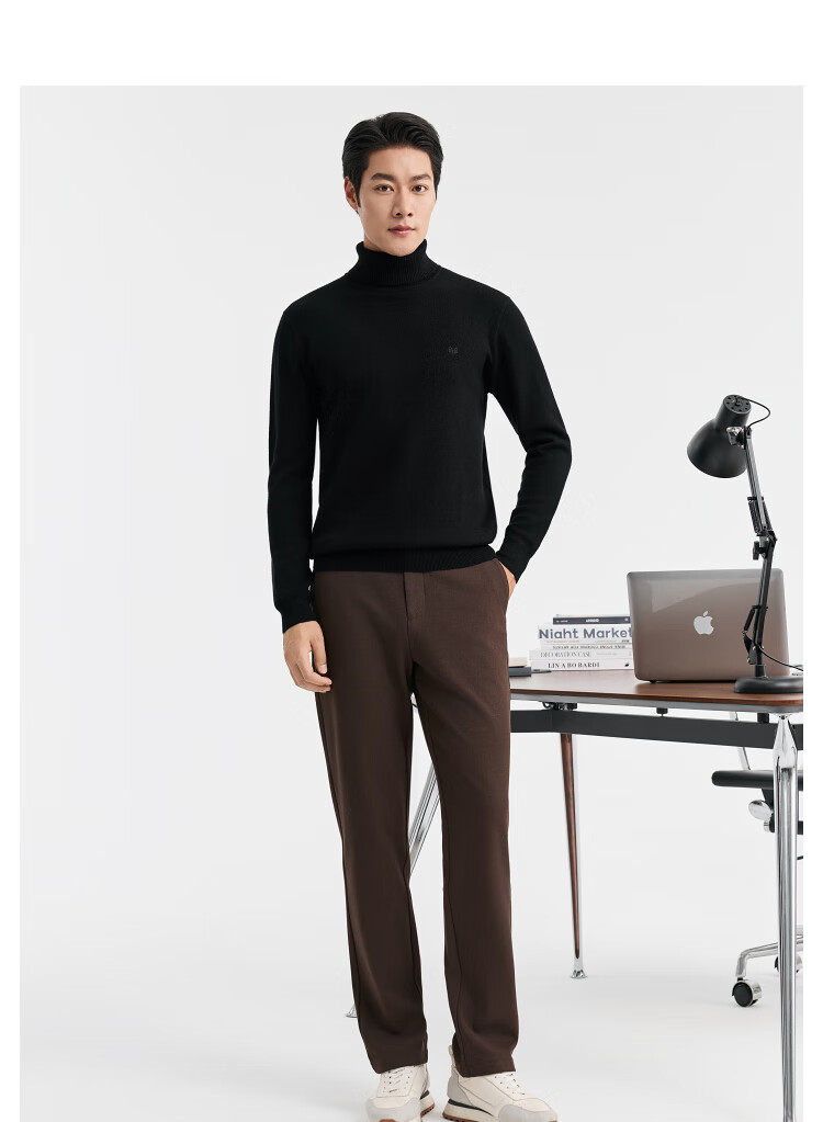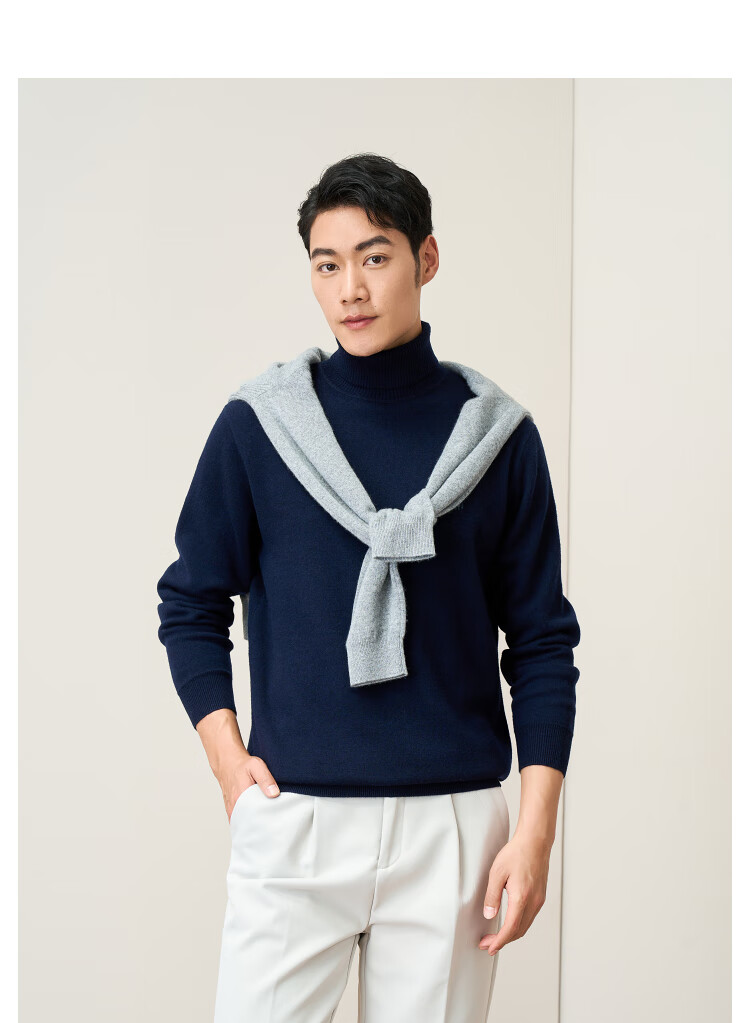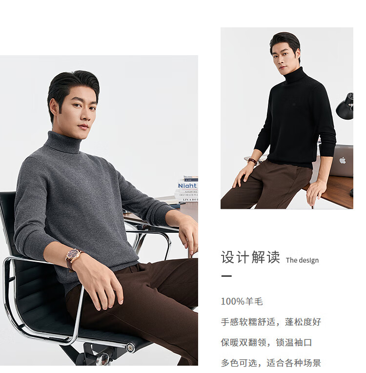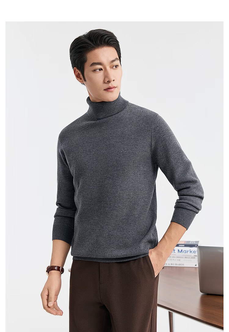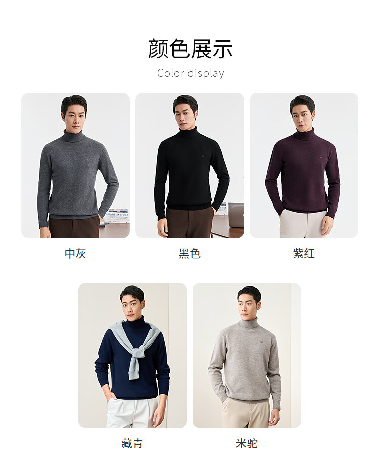 Hengyuanxiang turtleneck thickened wool sweater for middle-aged men with two lapels pure wool casual men's sweater warm solid color sweater for men black L/175/92A