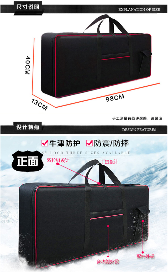 Acacia bird electronic piano bag universal piano bag 8mm cotton padded shoulder carry portable electronic piano bag black with red edges