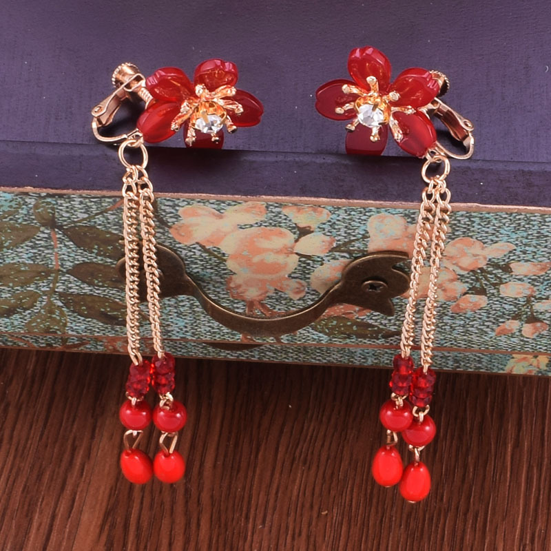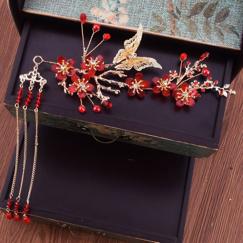 Wanbaozi ancient style hair accessories, Han costume accessories, headwear, handmade hairpins, red butterfly step shake, ancient costume hairpins and earrings set, red set as shown in the picture