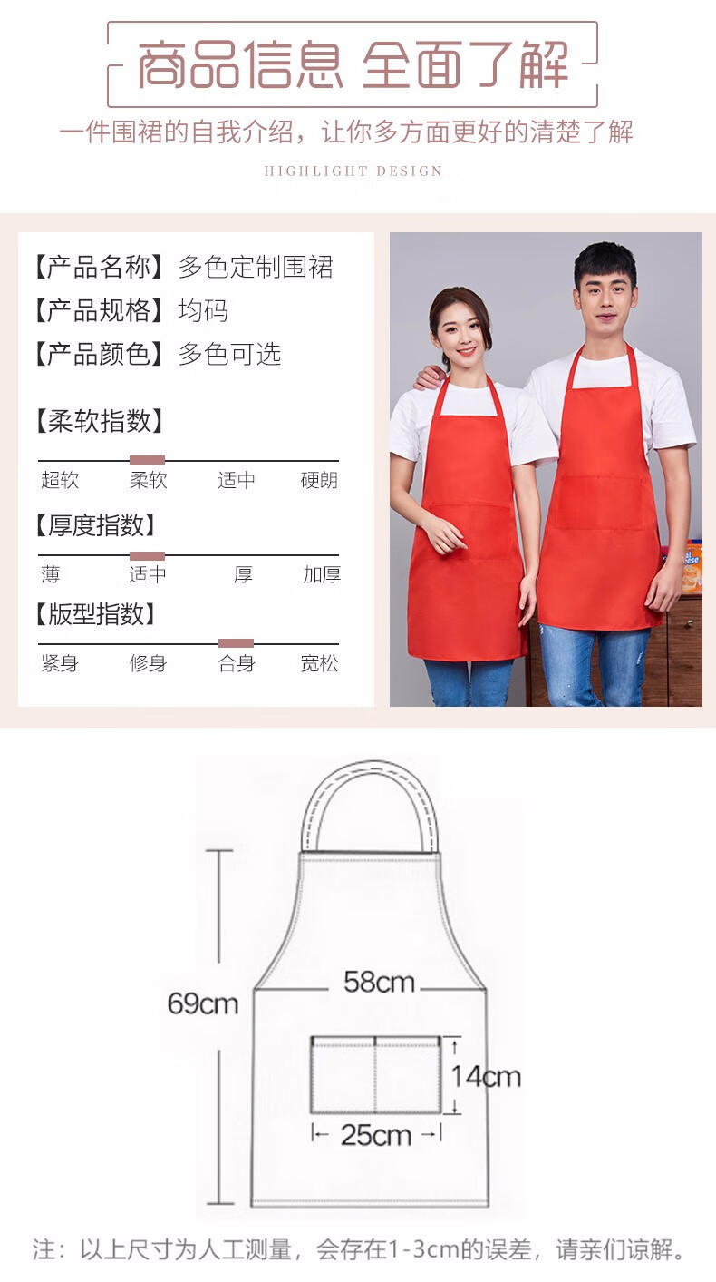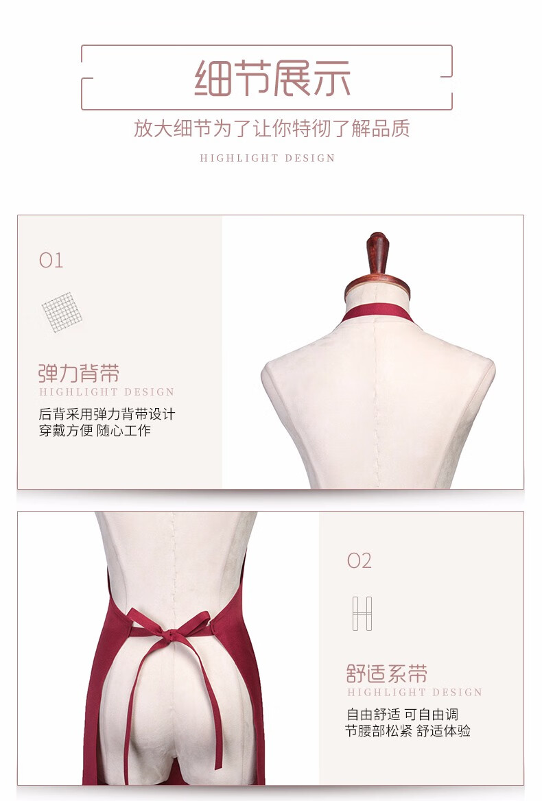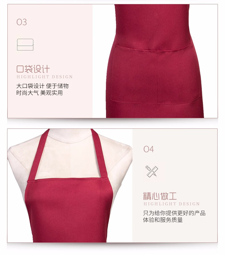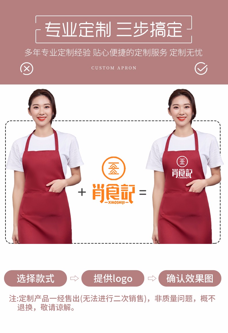 Jixuan catering waiter work clothes apron with customized logo printing, hot pot restaurant apron for diners, customized apron, burgundy, one size fits all
