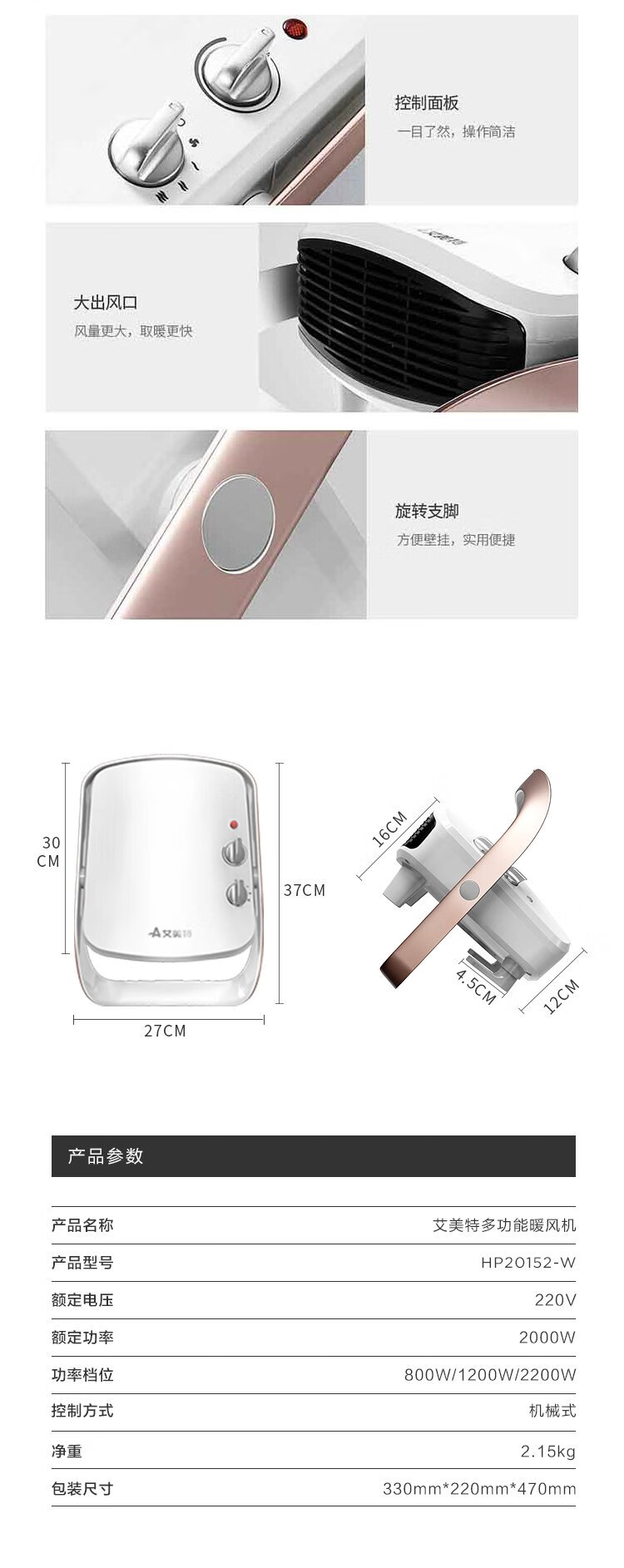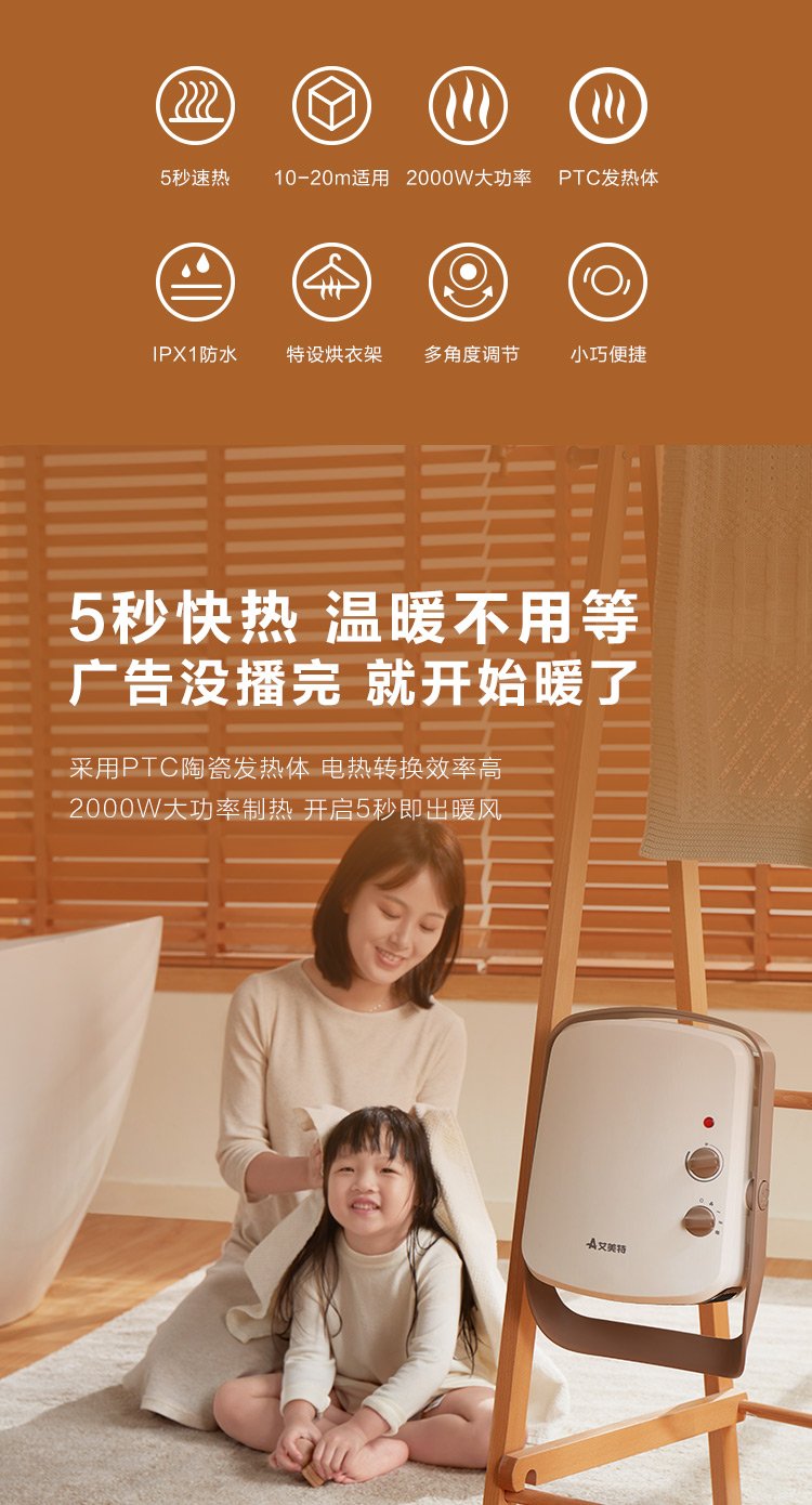 AIRMATE heater/electric heater/electric radiator home/office heater bathroom waterproof stove bath heater hot air fan HP20152-W