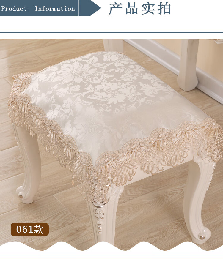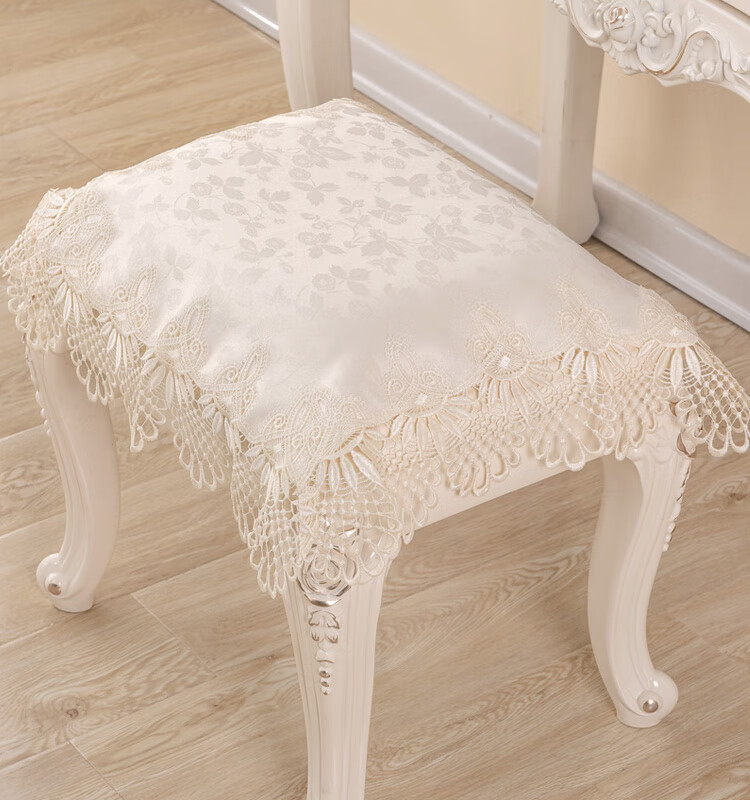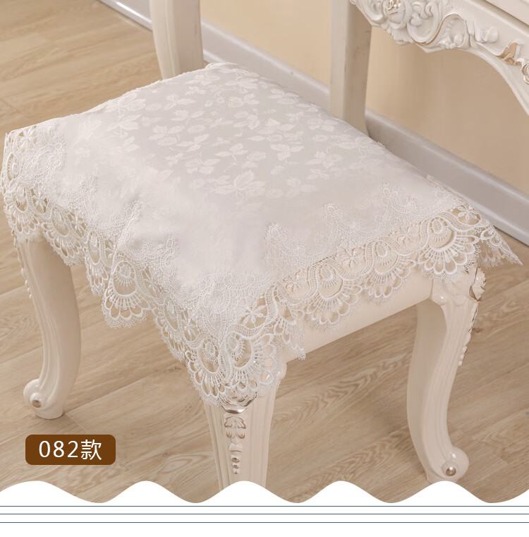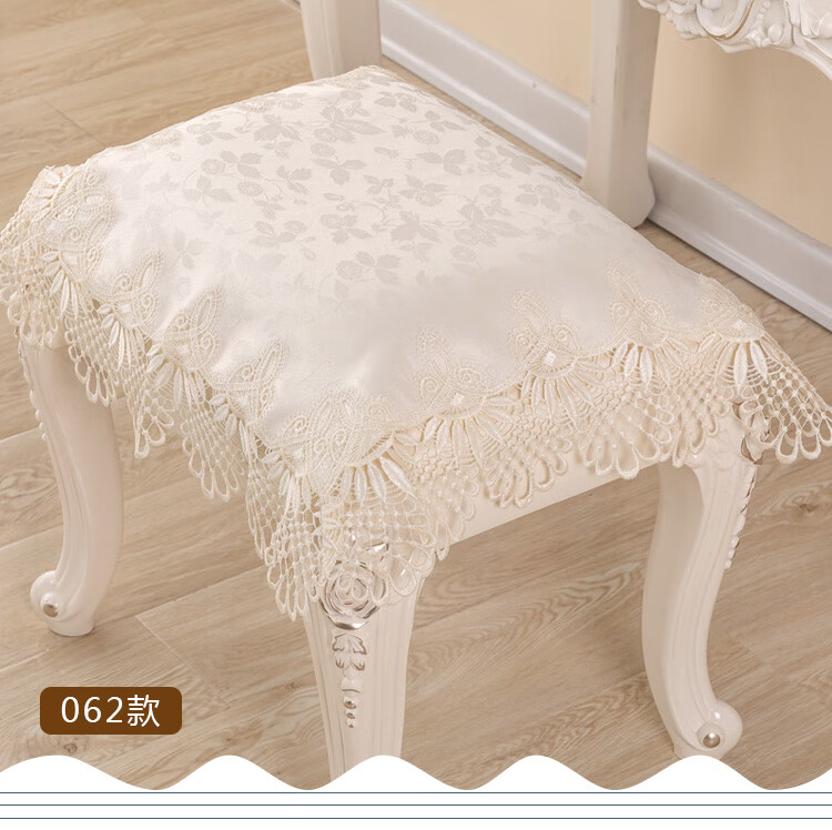 Piano stool cover, dustproof cover, bedside table cover, dressing table tablecloth, European lace makeup stool cover, dressing table stool cover, model 061 (water-soluble lace) 56*56cm (small stool cover)