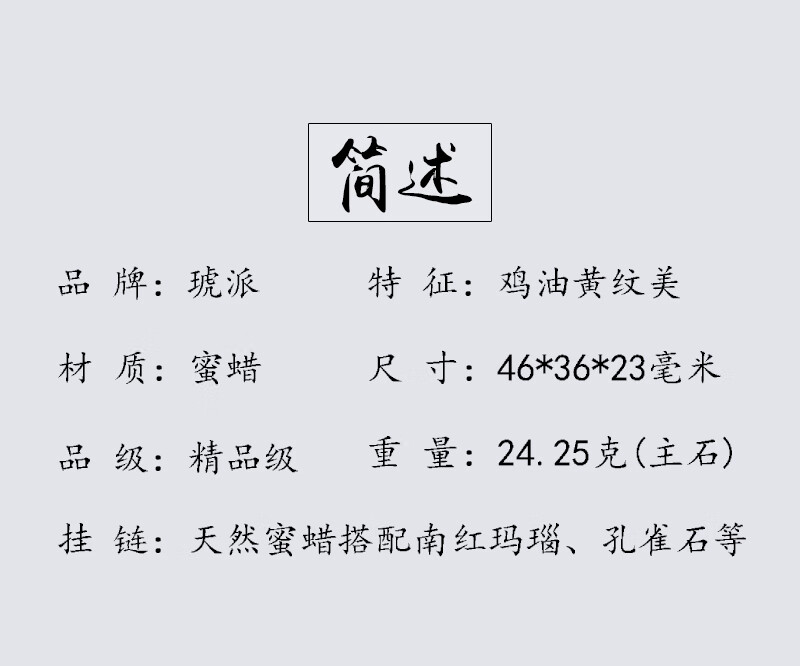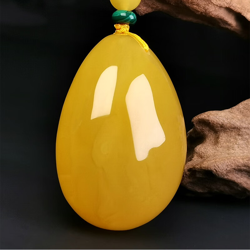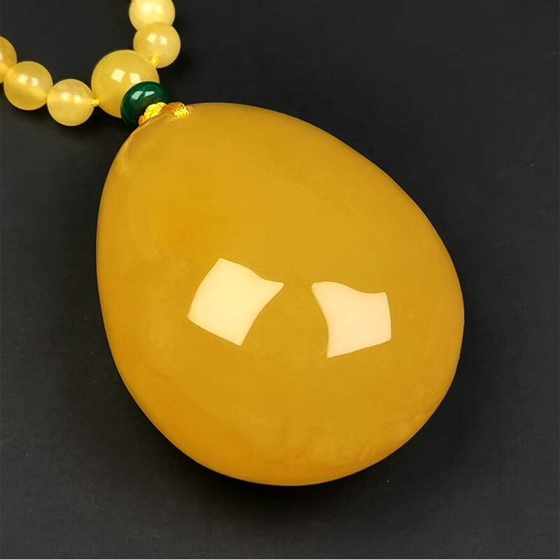 Hupai One thing, one picture, one certificate, natural beeswax pendant, drop-shaped pendant necklace, sweater chain, chicken oil yellow, flawless pendant, 24.25g, 46*36*23mm