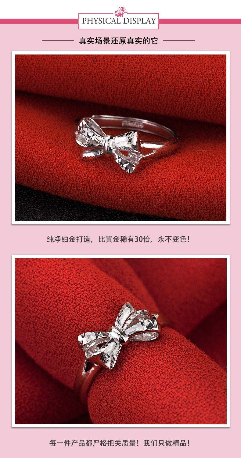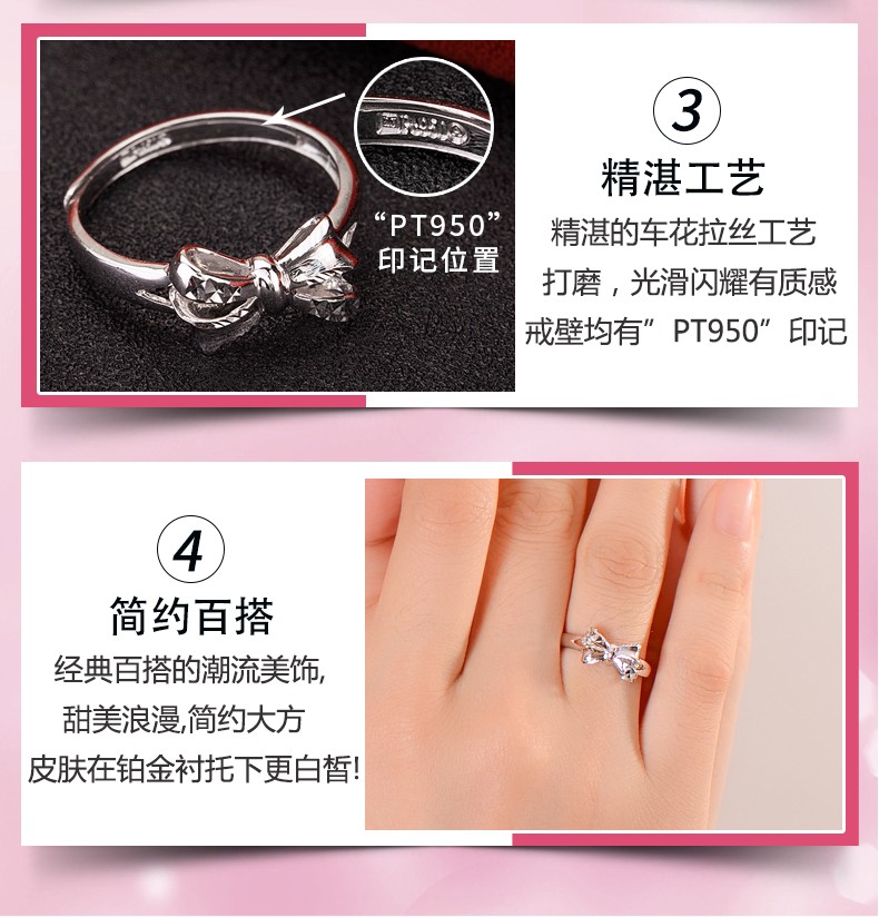 Yuanshengfu new fashion platinum PT950 ring women's versatile bow platinum ring adjustable 3.69 g