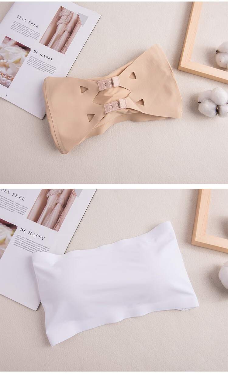 Renlofer strapless bra-wrapped tube top and beautiful back Internet celebrity suspender bra women's bottoming top off-shoulder push-up bra 2-pack white 2-piece