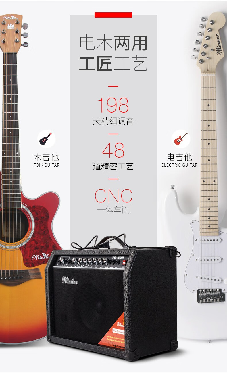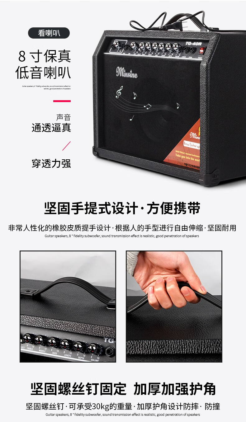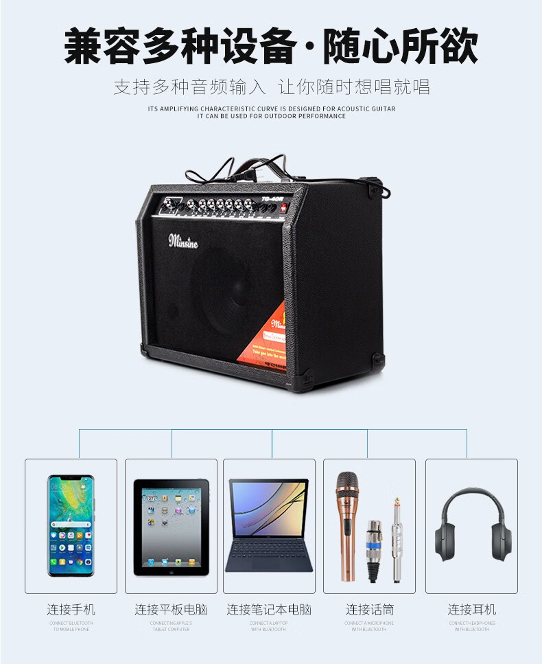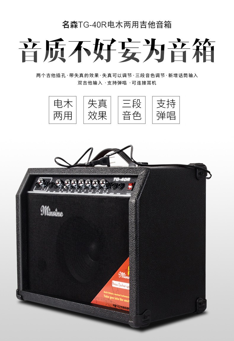 Minsine Guitar Speaker Folk Acoustic Guitar Playing Singing Bass Street Roadshow Outdoor Singing Portable Professional Audio Plug-in Version 40W (Double-use Bakelite)