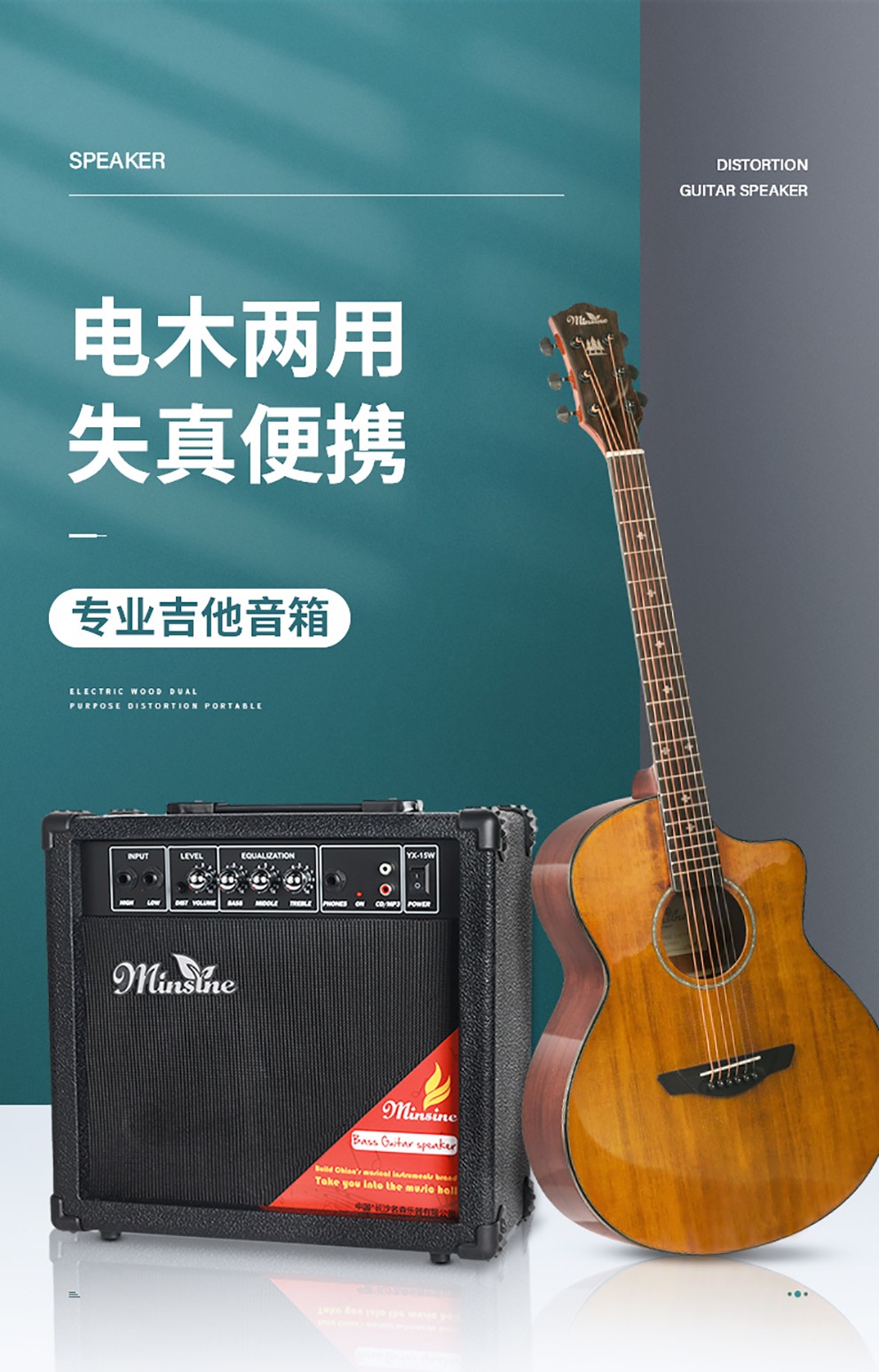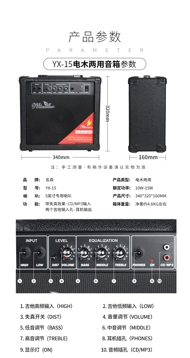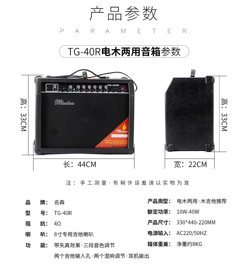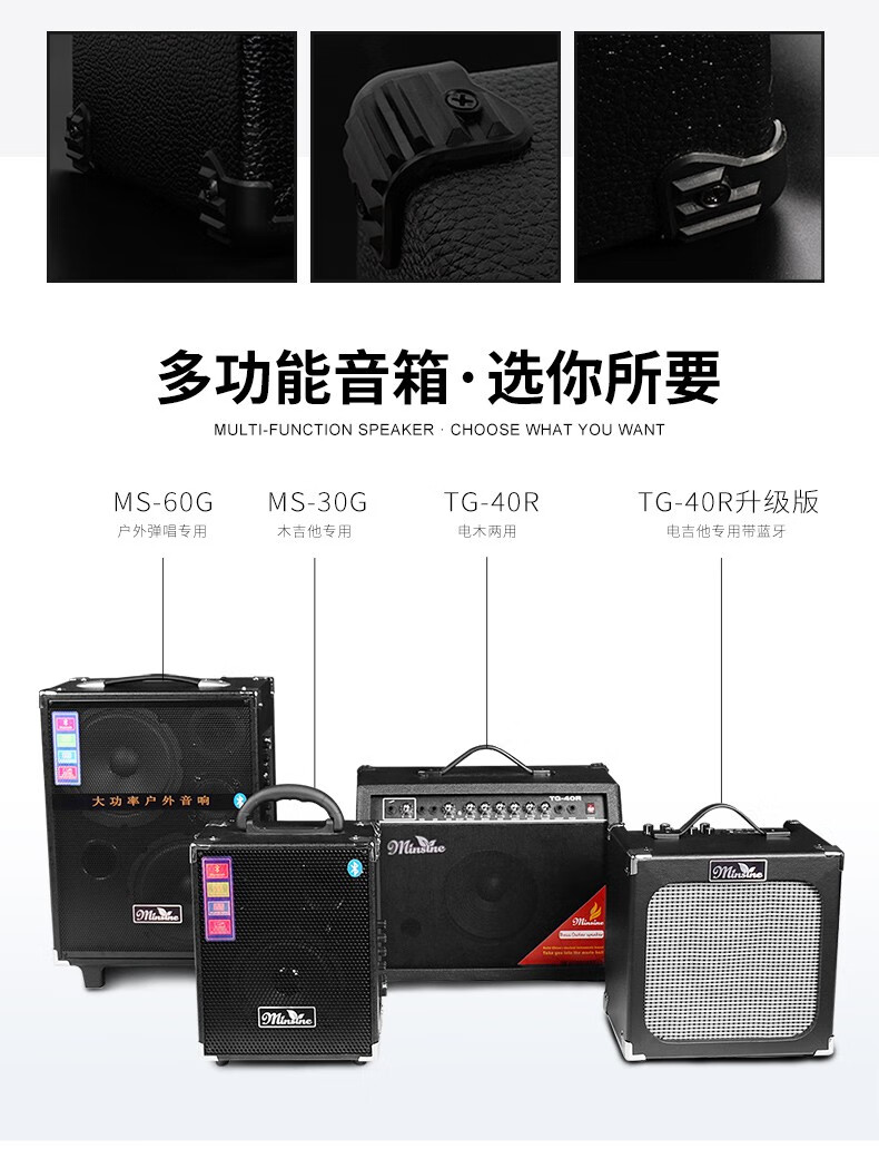 Minsine Guitar Speaker Folk Acoustic Guitar Playing Singing Bass Street Roadshow Outdoor Singing Portable Professional Audio Plug-in Version 40W (Double-use Bakelite)