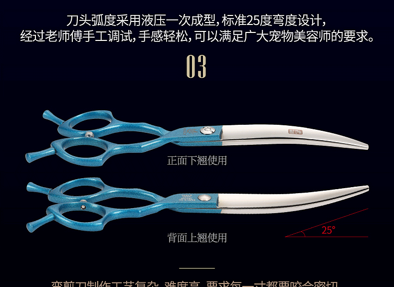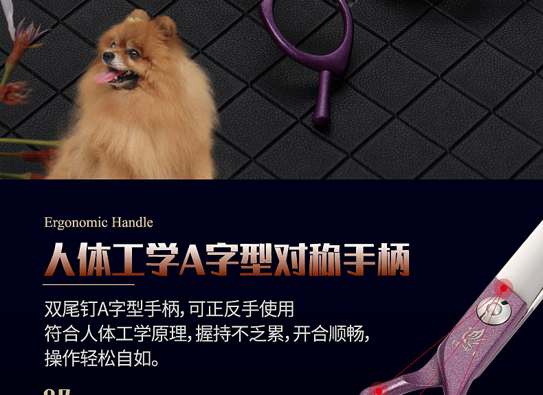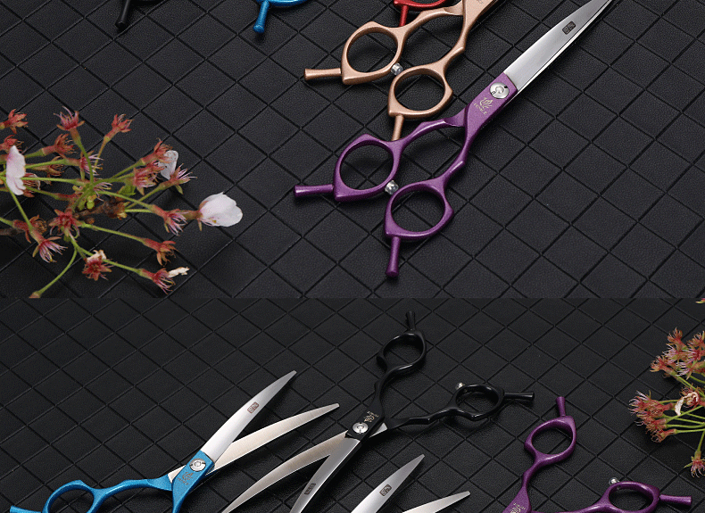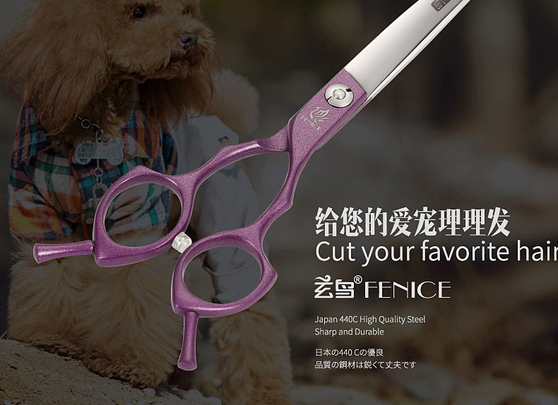 Xuanniao professional pet scissors curved shears trimming beauty scissors Pomeranian Teddy Bichon dog hair clipper trimming tool 6.5 inches purple 6.5 inches (curved scissors)