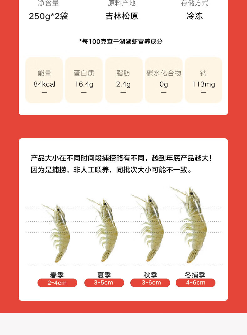 Chagan Lake shrimp, Xiuli white shrimp, small river shrimp, fresh frozen river shrimp, fresh water, fresh water, lake shrimp 250g (net weight) 2 pieces minimum