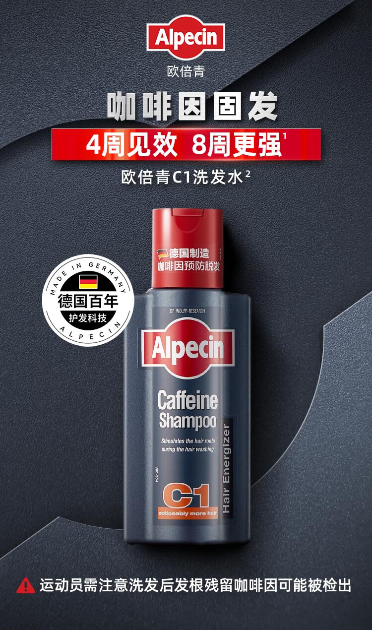 Alpecin imported from Germany, caffeine anti-hair loss shampoo, hair nourishing and firming shampoo, men's and women's oil control shampoo 250ml