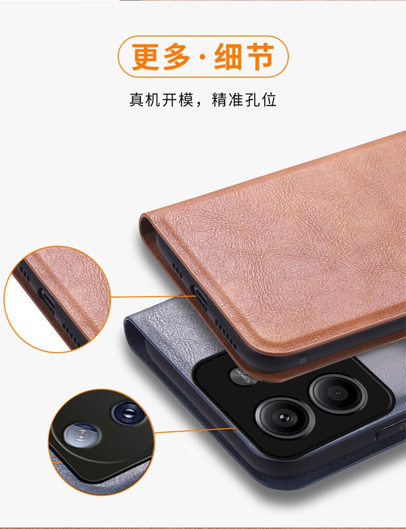 Peno Xiaomi Redmi Note13Pro Protective Cover Redmi Phone Case Ultra-thin Standable Flip-top Leather Case Men's and Women's Lens All-inclusive Anti-fall Soft Case Magnetic Leather Case Jazz Black Redmi Note13pro