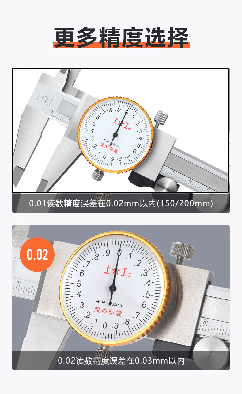 Shanggong stainless steel dial caliper 0-300mm graduation value 0.02mm vernier caliper high precision dial caliper