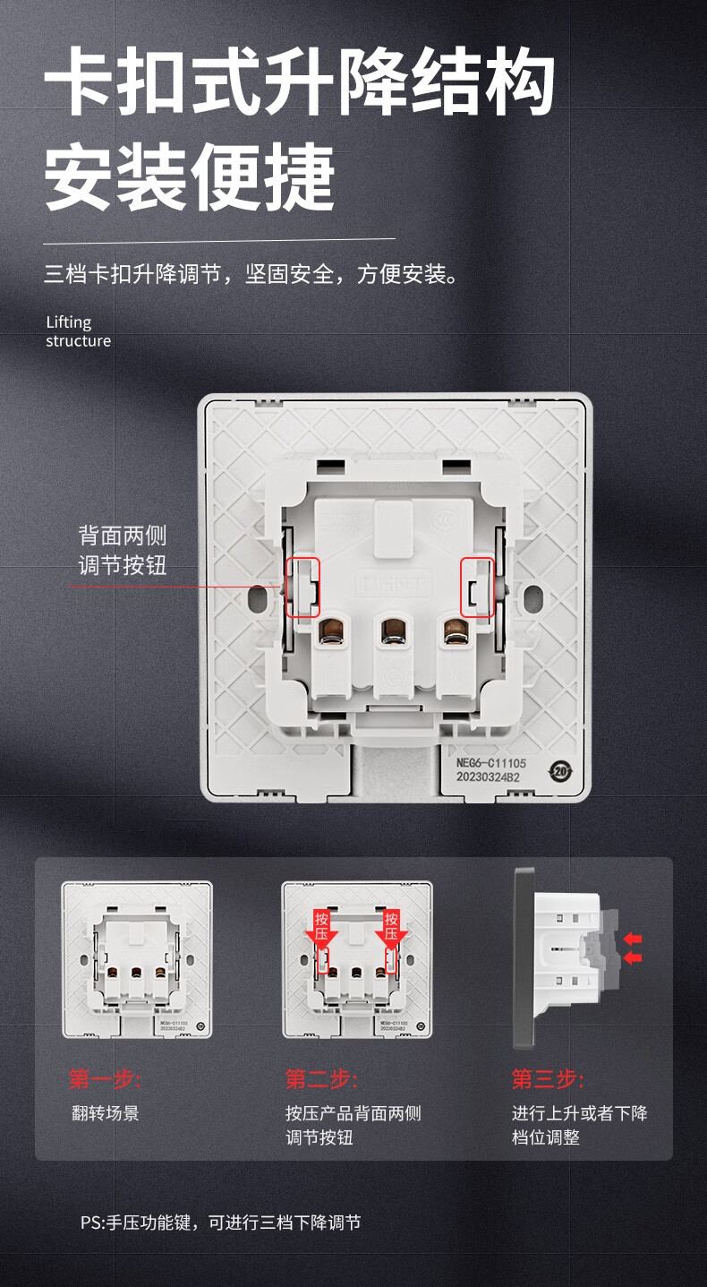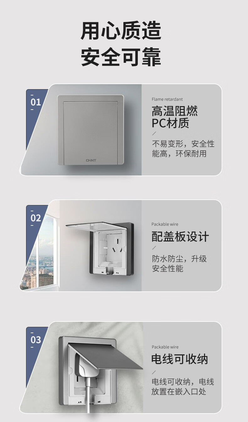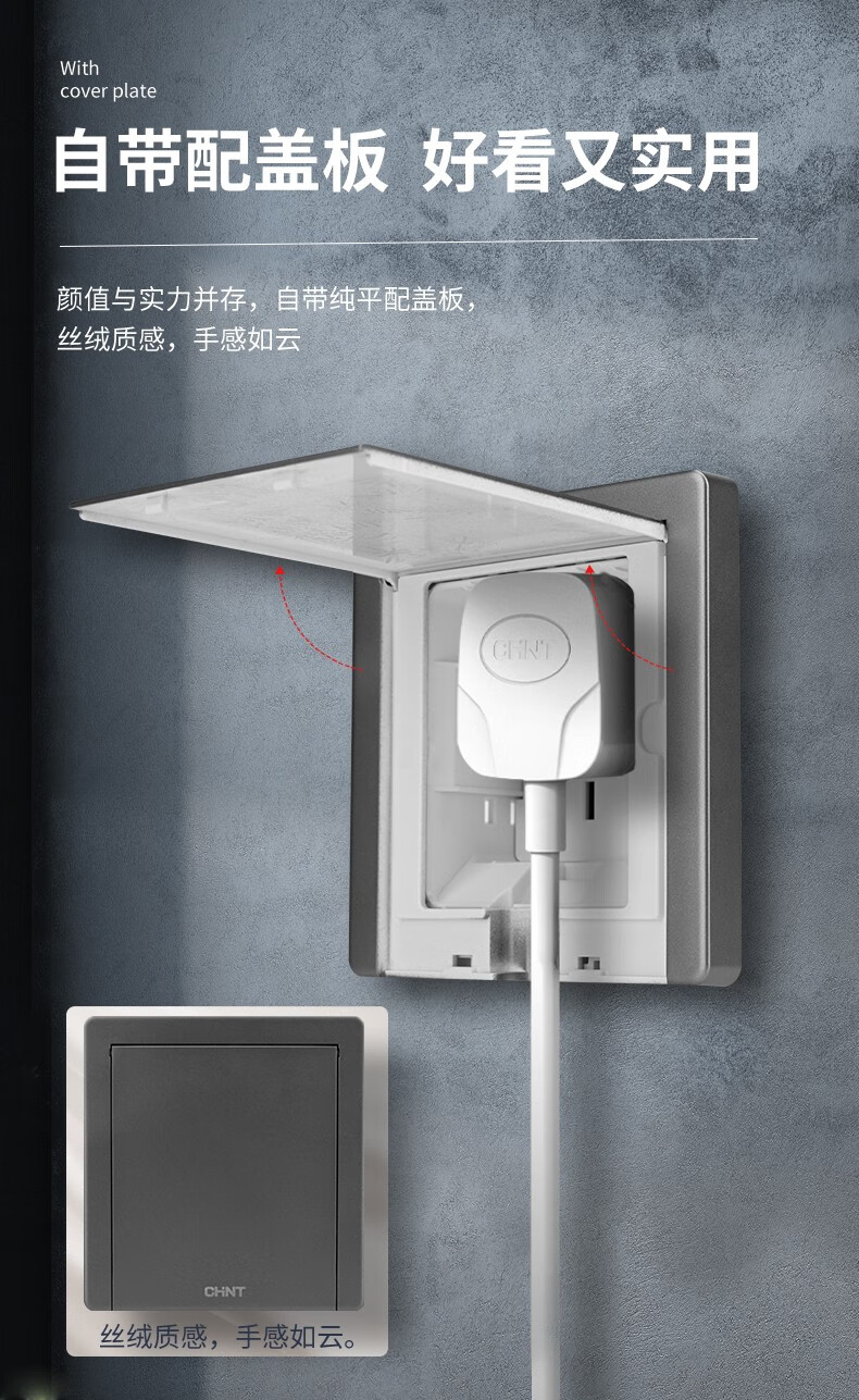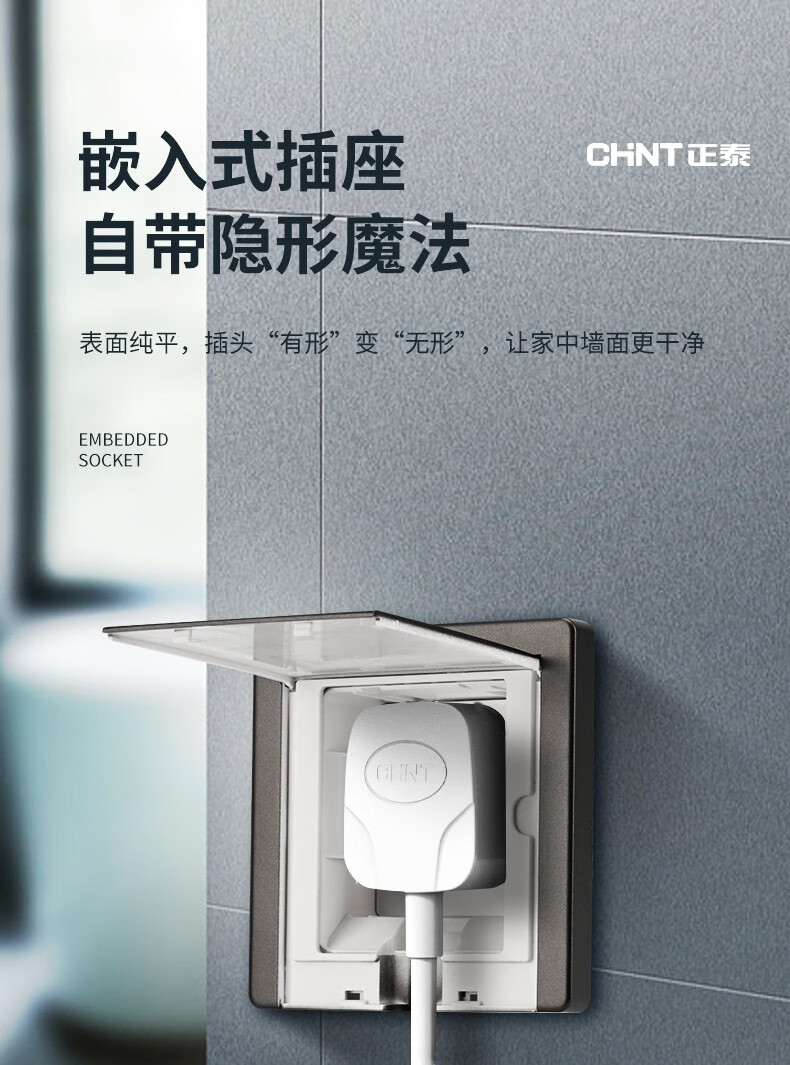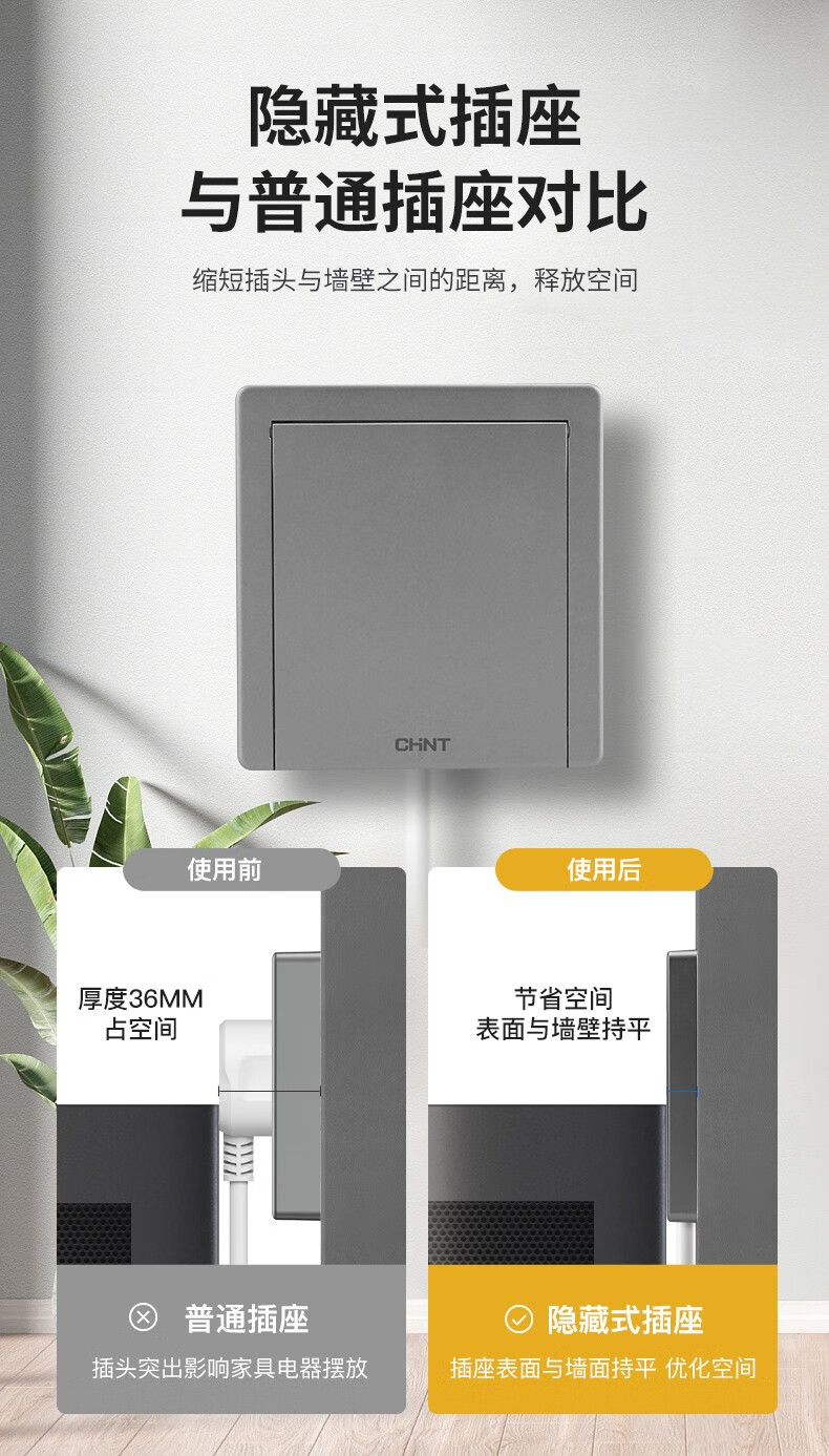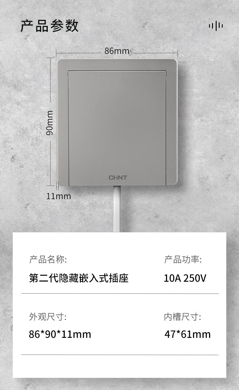Chint (CHNT) switch socket panel 86 concealed hidden embedded socket kitchen one-open eight-hole TV refrigerator built-in socket NEG6-C11105 one-open eight holes 10A elegant white