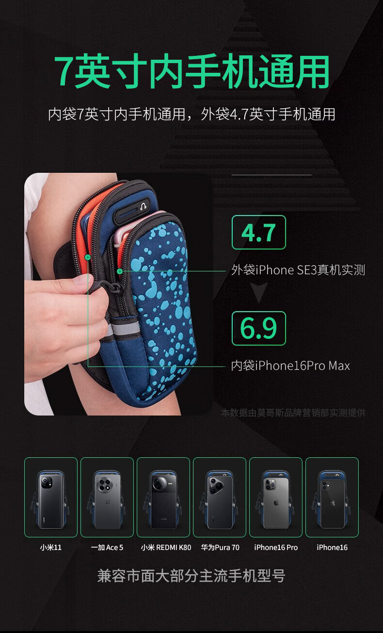 Mogos running mobile phone arm bag arm and wrist dual-use mobile phone bag sports running mobile phone protective cover water-repellent large capacity for men and women suitable for Apple Huawei Honor Xiaomi vivooppp Zi Xing Orange upgraded version water-repellent design large capacity within 7 inches