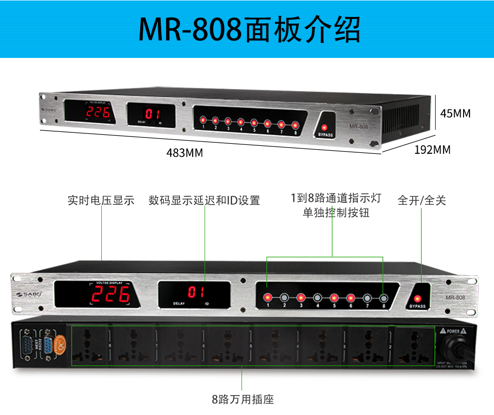 SABO power sequencer 8-channel with filter sequential power controller 16-channel professional ktv conference stage RS232 central control socket manager HX1602 filter model 16-channel network 110v-240v