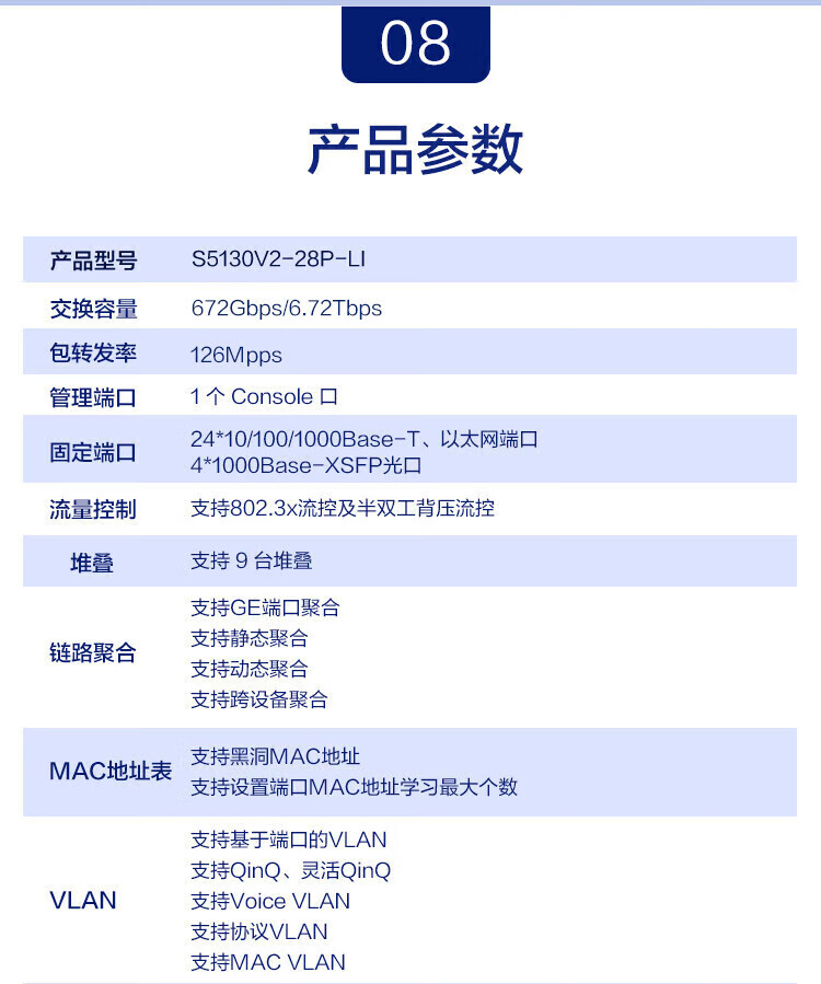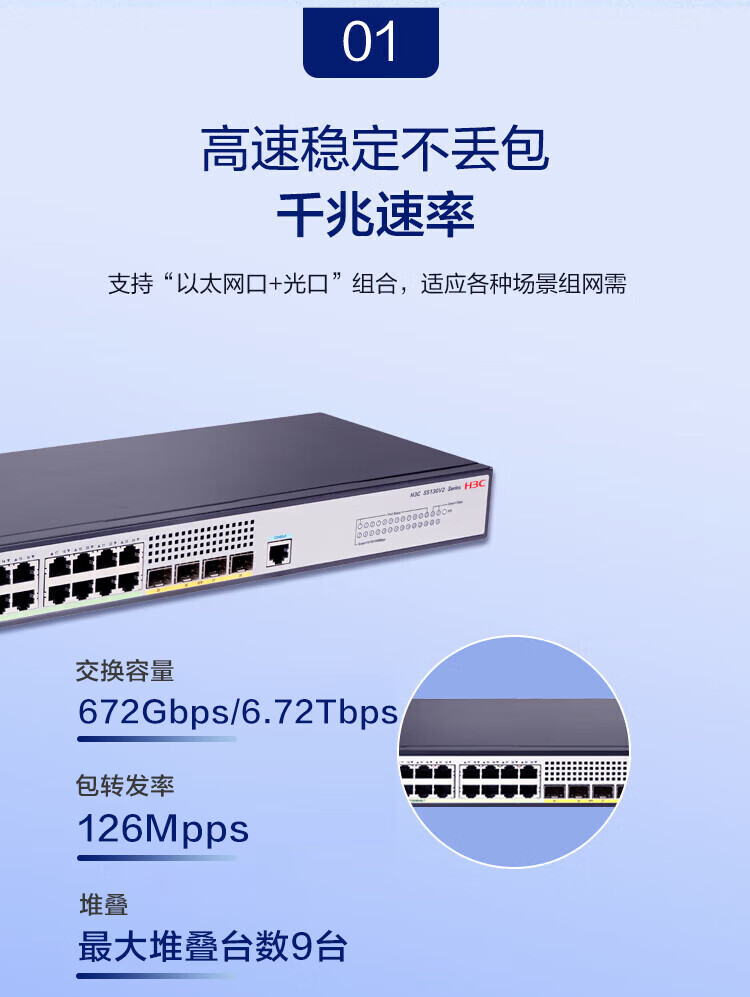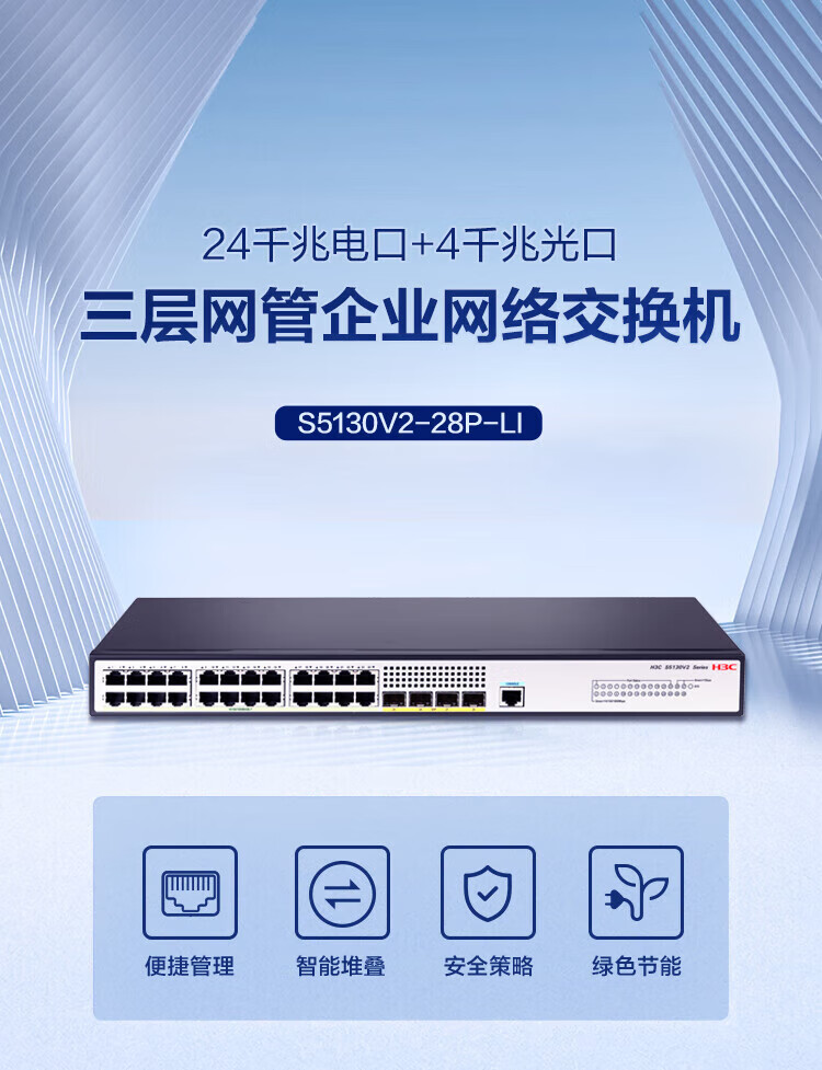 H3C S5130V2-28P-LI 24 Gigabit Electrical + 4 Gigabit Fiber Port Three-Layer Network Managed Enterprise-level Network Switch Noise Reduction IPv6/Stacking/Link Aggregation