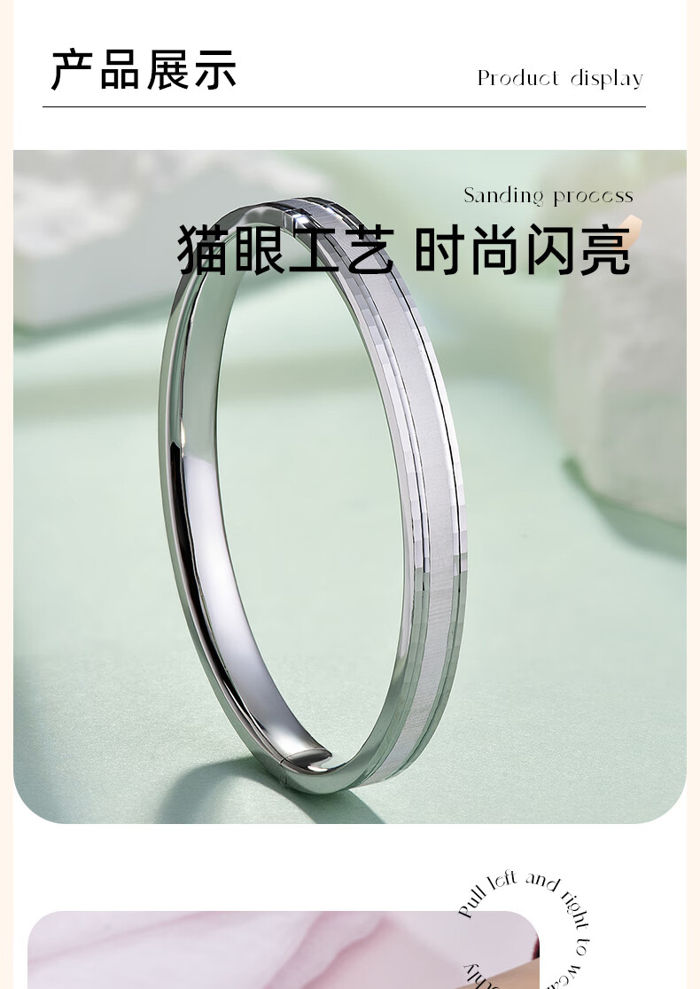 GsunG platinum PT950 bracelet for women, couple style, cat eye craft bracelet, colorful brushed surface platinum bracelet spring buckle, calculated based on the gold price of the day