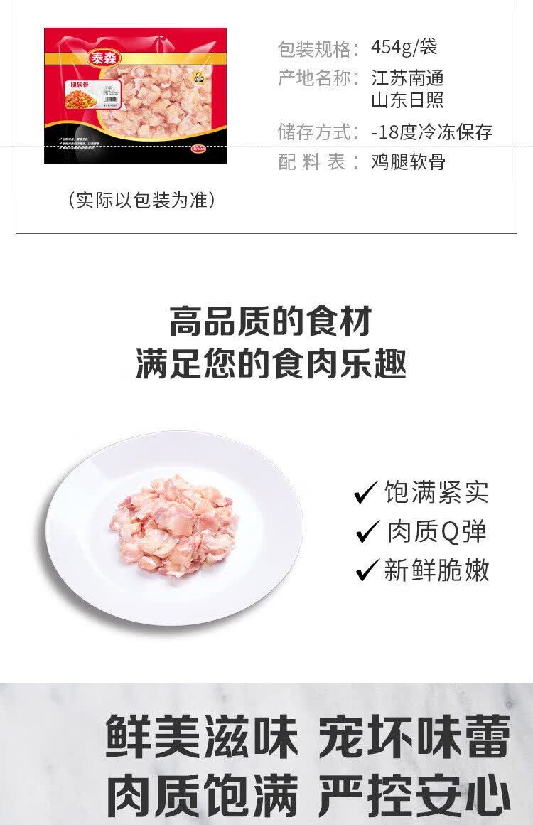 泰森(Tyson)腿软骨 454g 1袋 冷冻 鸡脆骨鸡软骨掌中宝烧烤生鲜食材