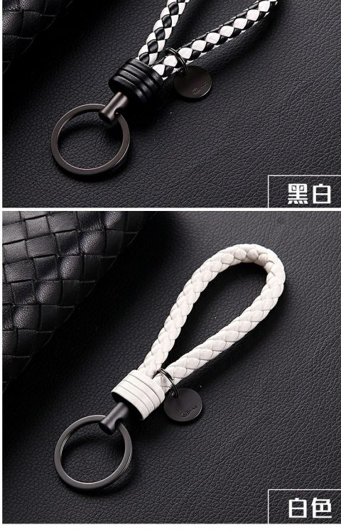 Hanjia hand-woven leather rope car key chain key ring men's and women's waist pendant key chain creative key rope tungsten ring 7 black rope leather rope