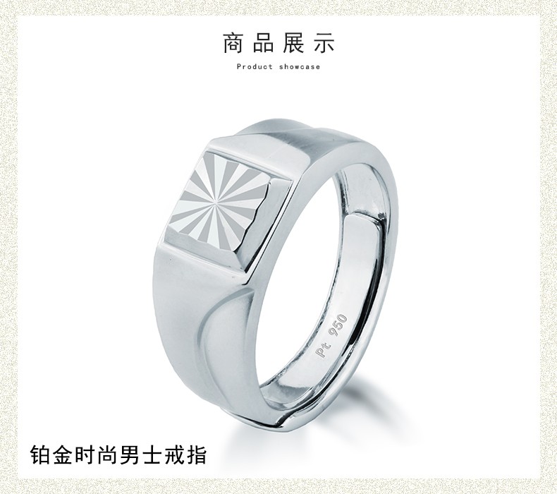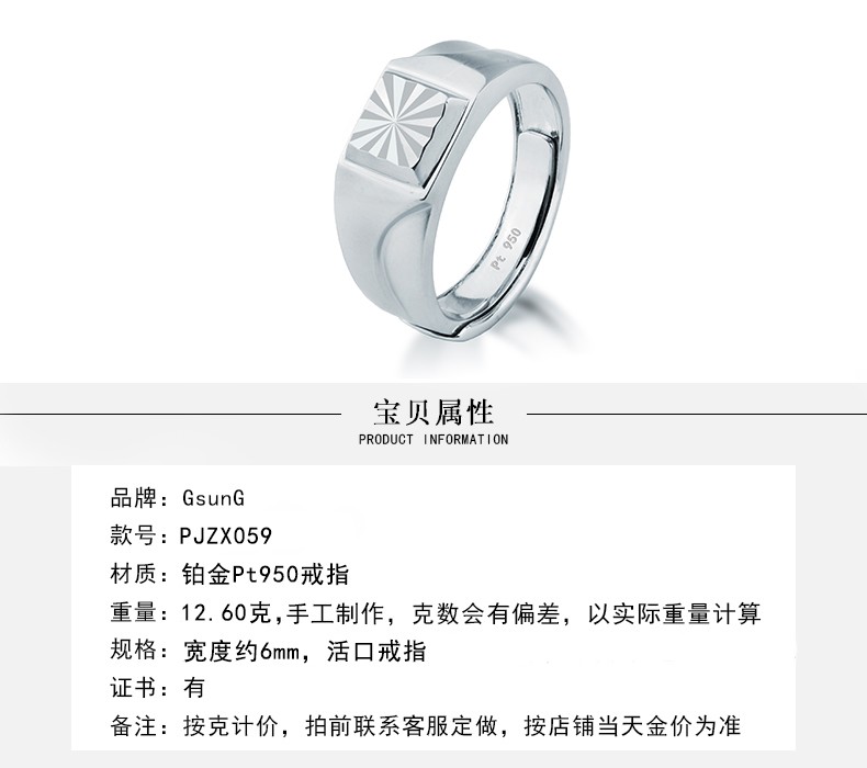 GsunG platinum PT950 ring men's platinum men's style atmospheric shiny wide ring men's live fashion ring priced by gram contact before bidding