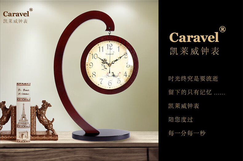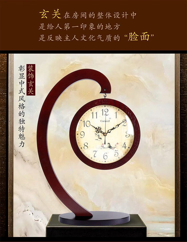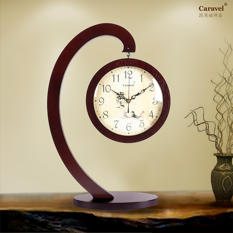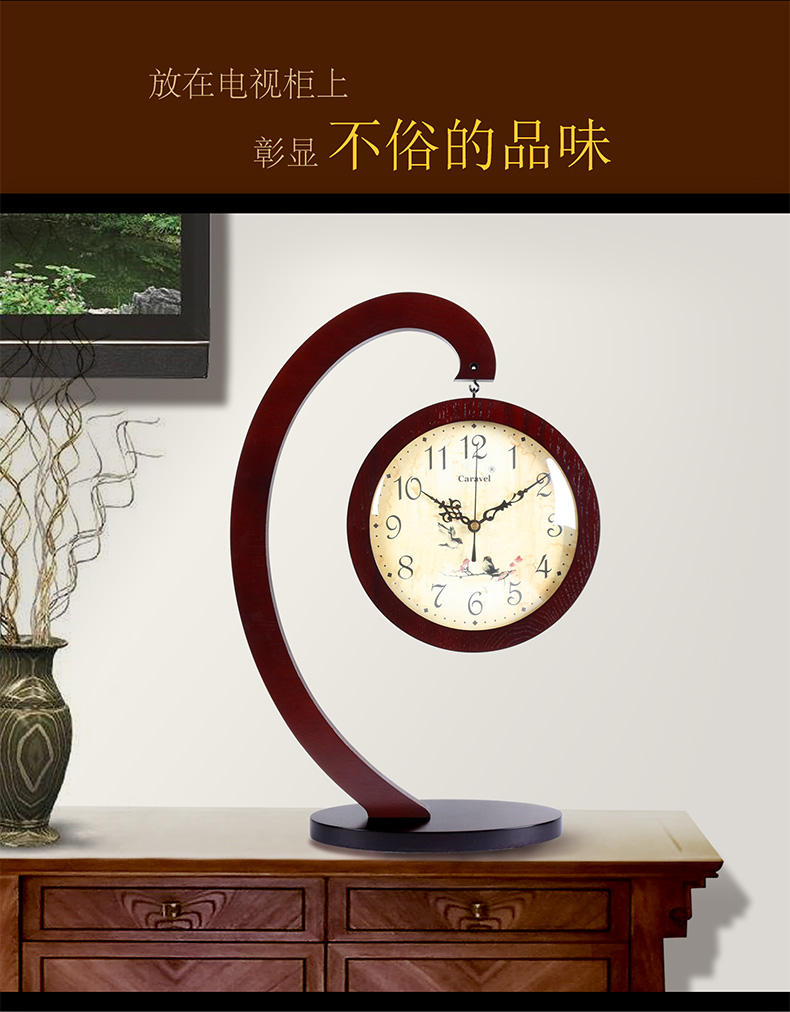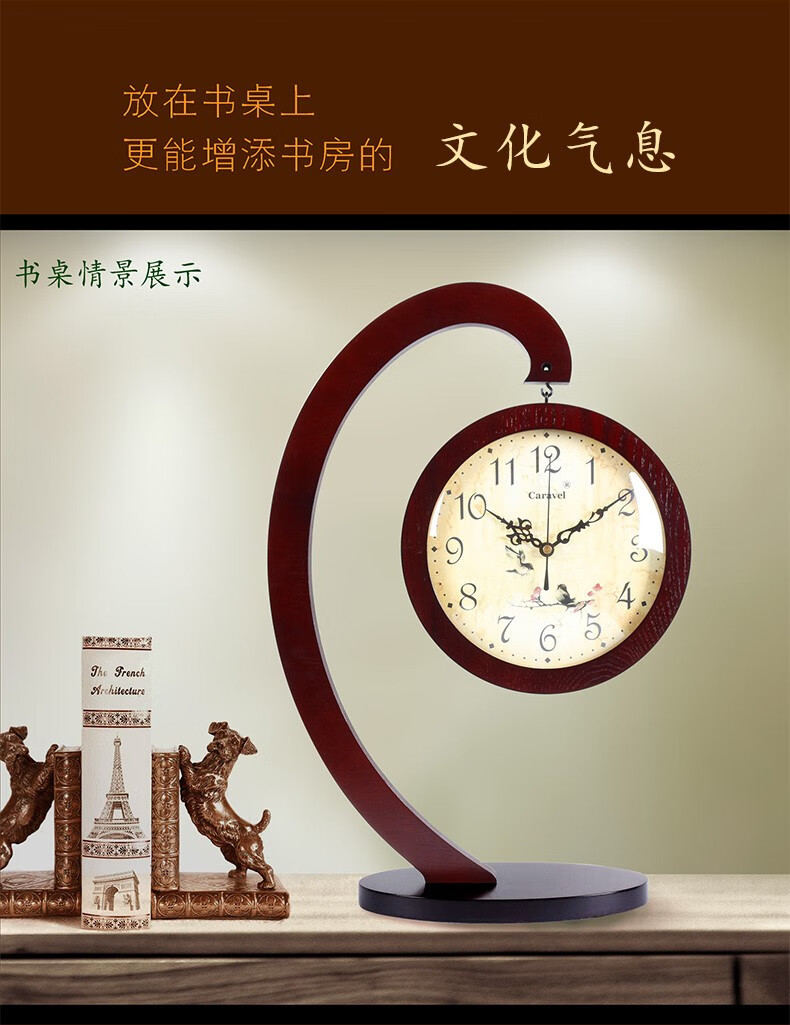 Caravel Desktop Clock Solid Wood Clock Wooden Quartz Clock Sitting Table Chinese Style Living Room Entrance Art Desk Clock TV Cabinet Clock 9299 Ba.Wang Movement