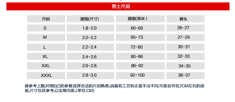 USA(inch) 28-30 30-32 32-34 34-38 38-42