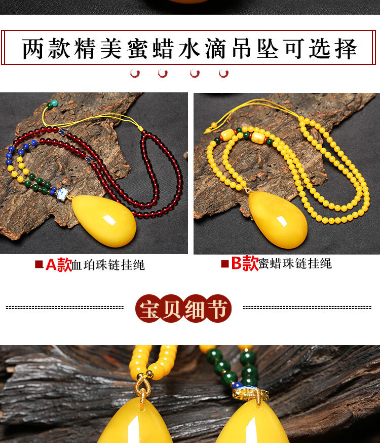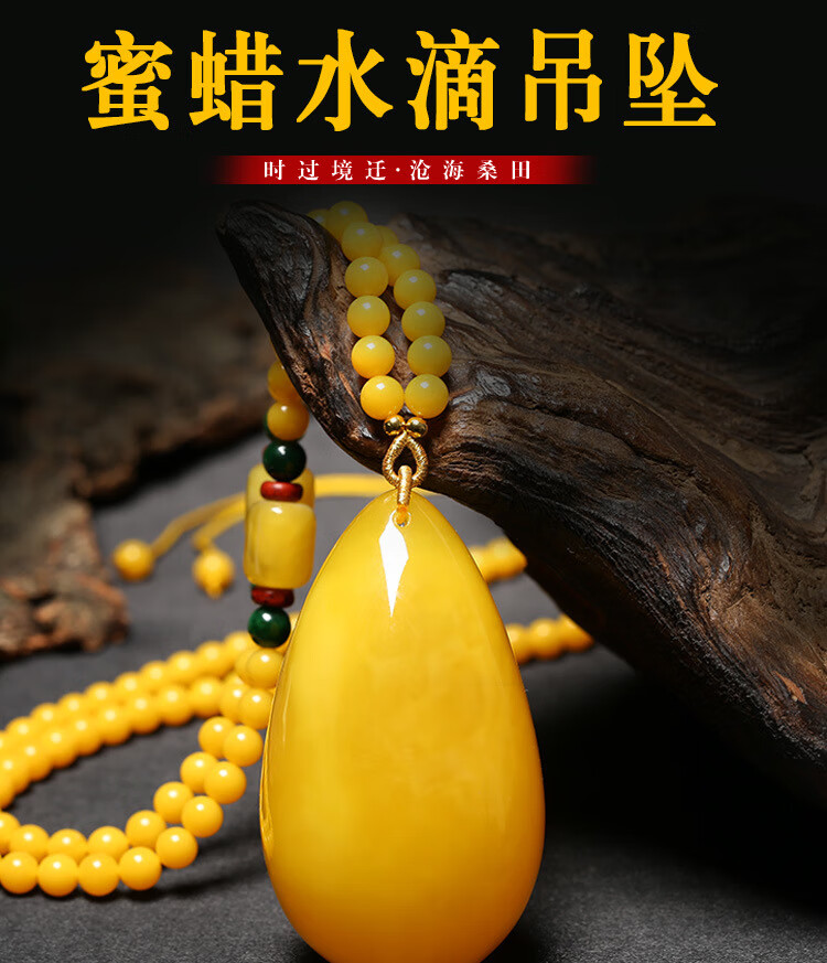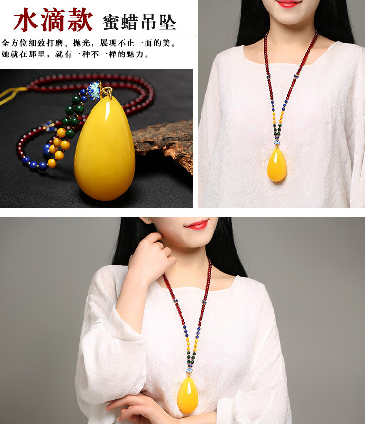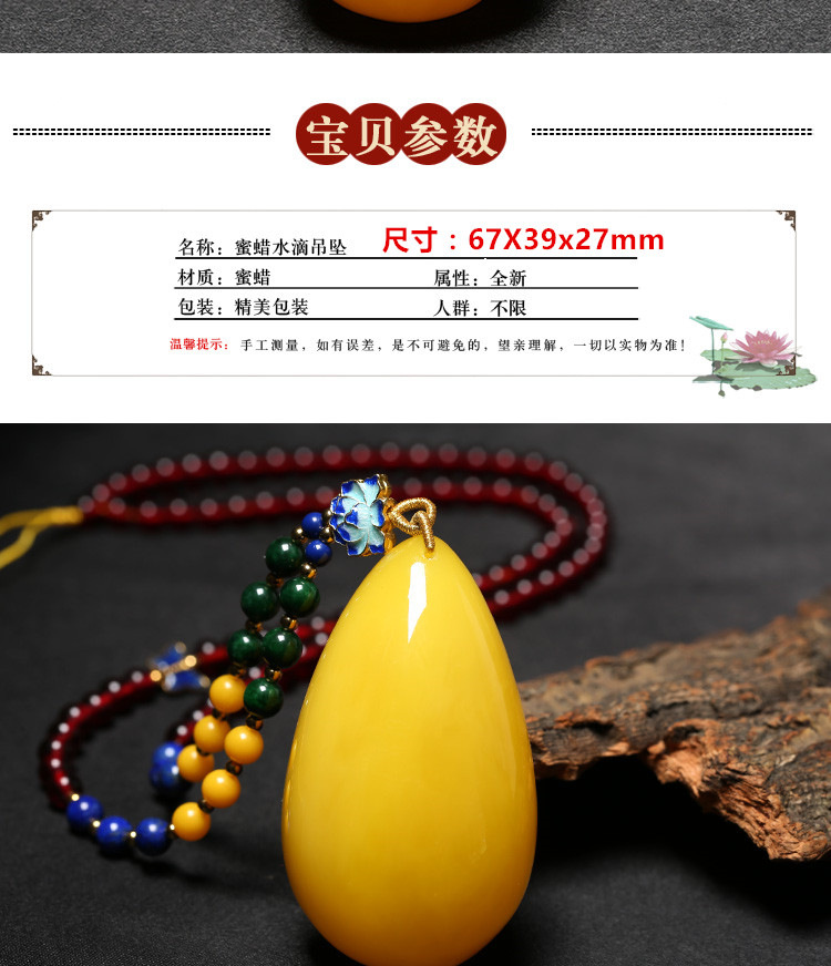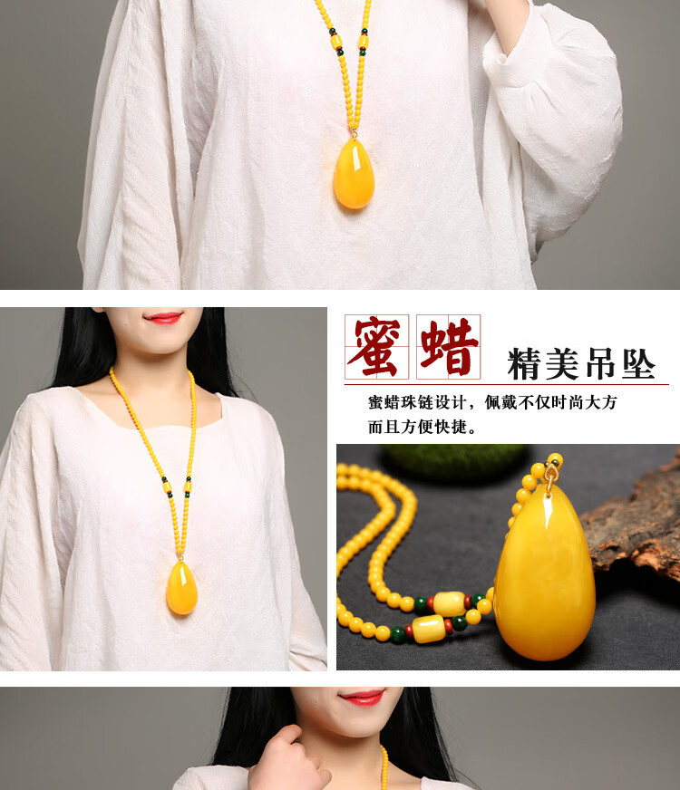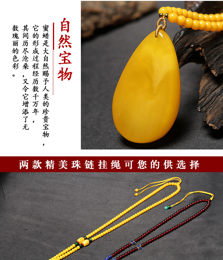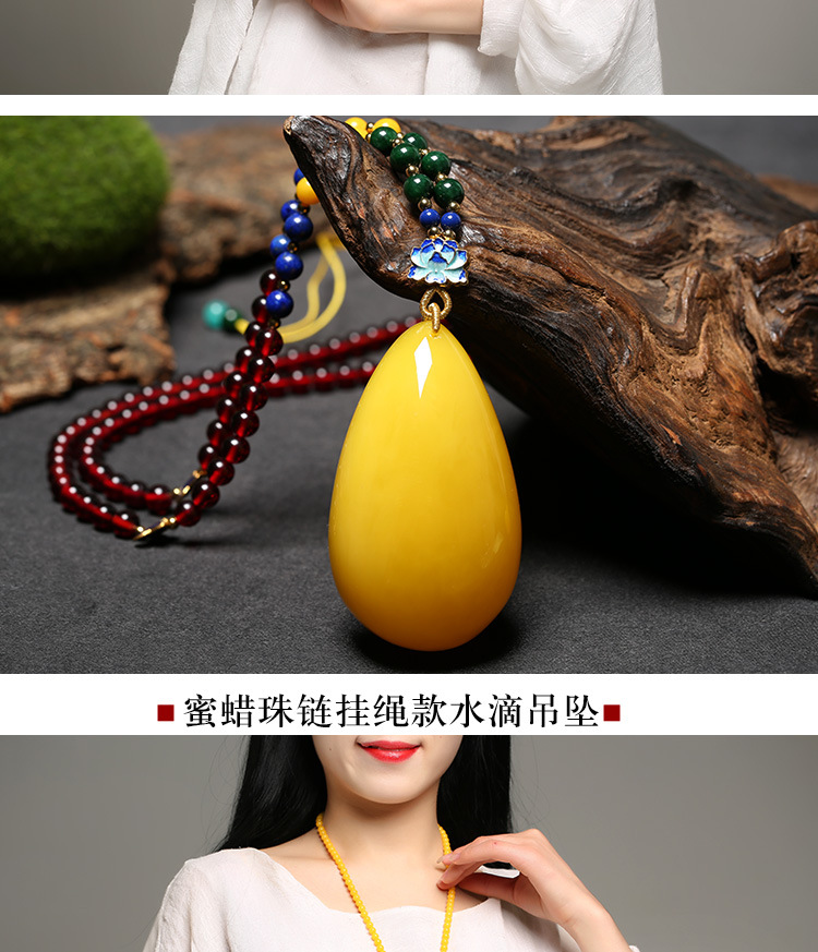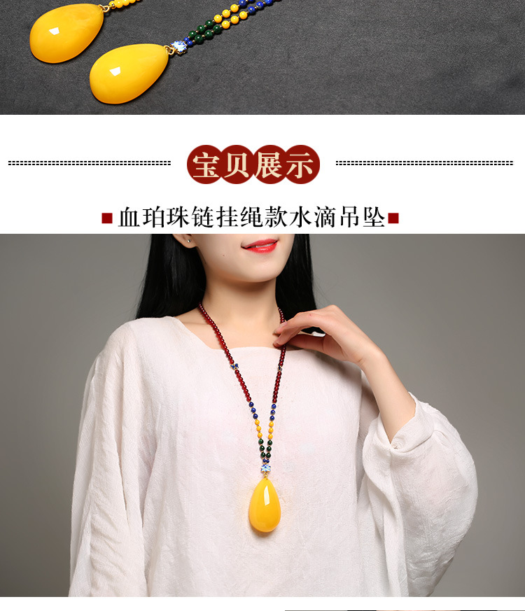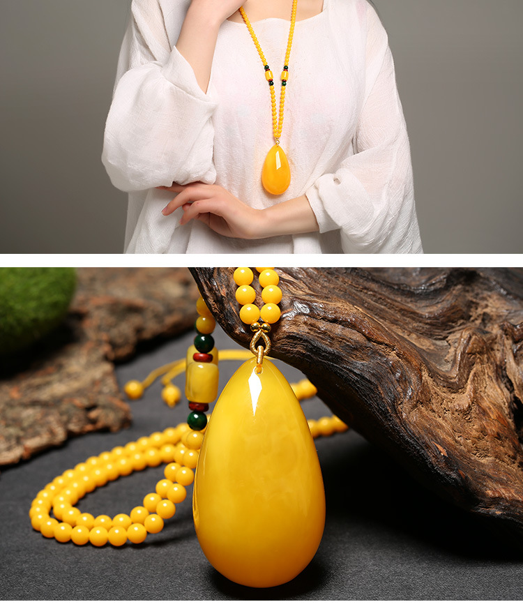 Flying Goose Beeswax Pendant Amber Raw Stone Baltic Sea Chicken Fat Yellow Water Drops Blood Amber Sweater Chain Necklace for Men and Women Picture Color B Style Beeswax Chain
