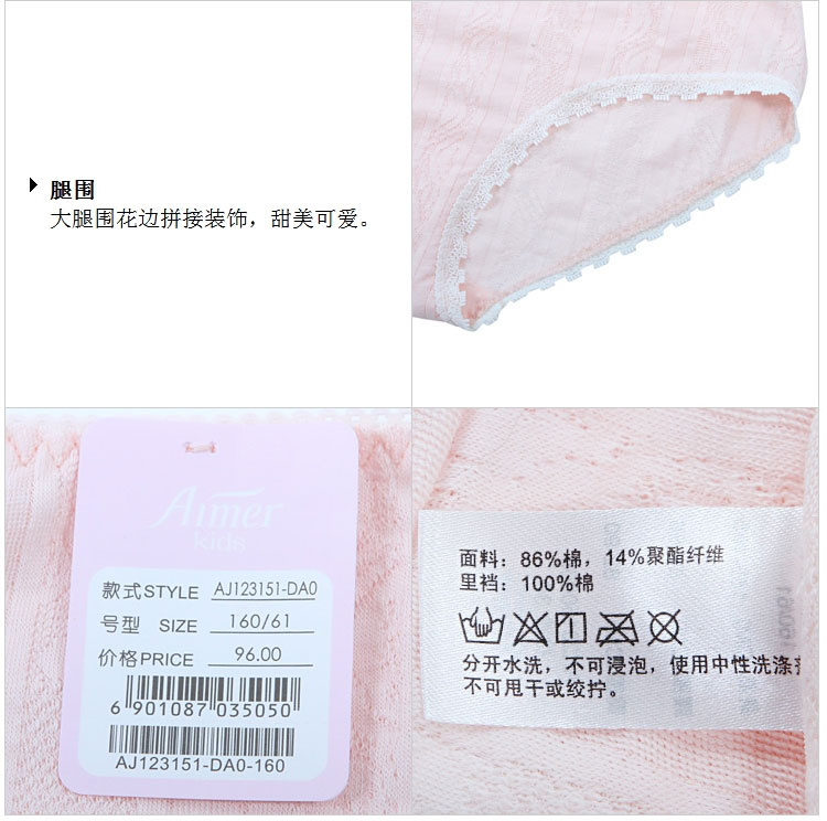 Adore Children's Roman Garden Mid-waist Boxer Briefs Cotton Underwear Girls Student Underwear Thin Single Pack AJ123151 Light Pink 160