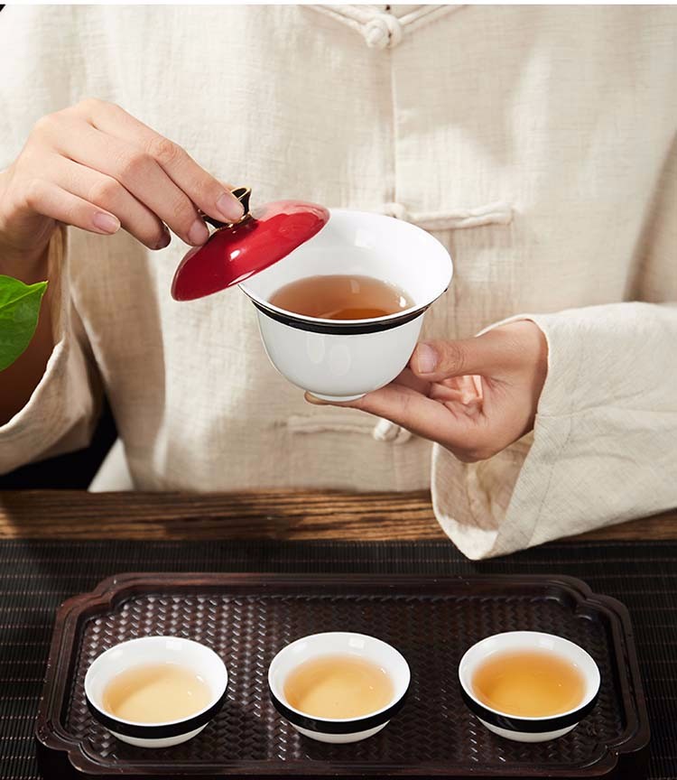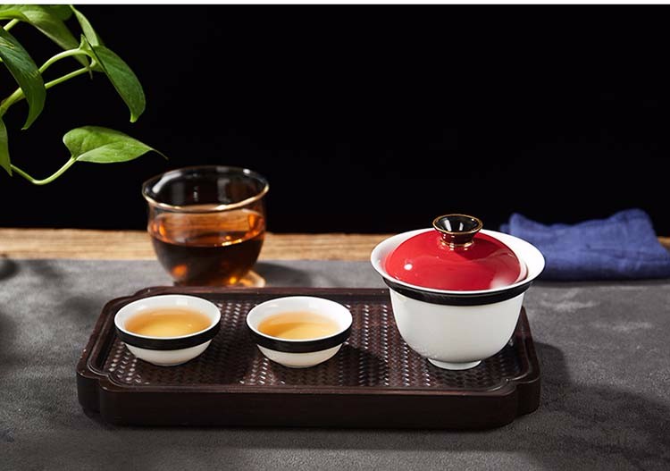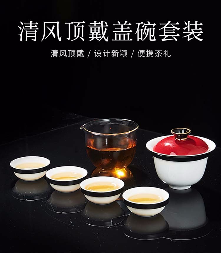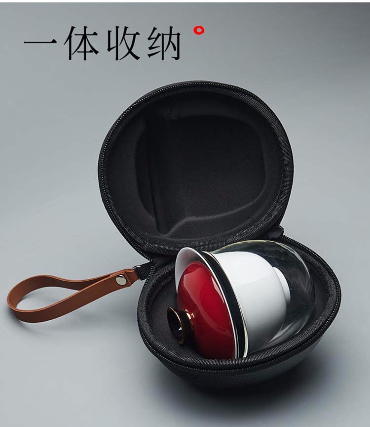 Rongshantang Qingshi Ceramic Travel Kung Fu Tea Set Covered Bowl Teacup One Pot Four Cups Fair Cup Set Outdoor Portable Bag Qingfeng Top Covered Bowl Set