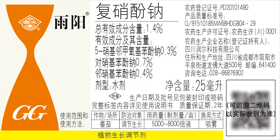 Guoguang Yuyang sodium nitrophenolate 1.4% promotes plant root growth, flowers and fruits, plant growth regulator 25ml*1 bottle