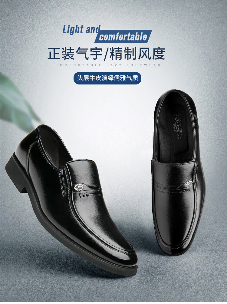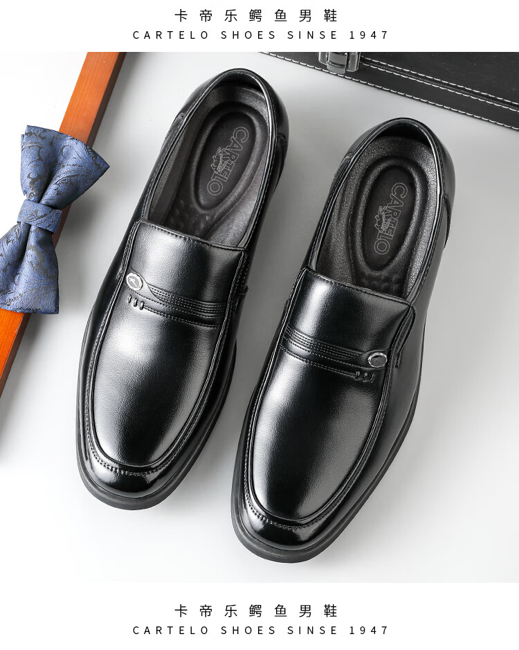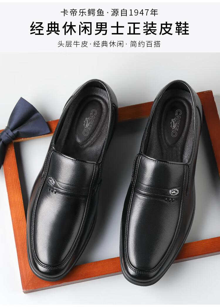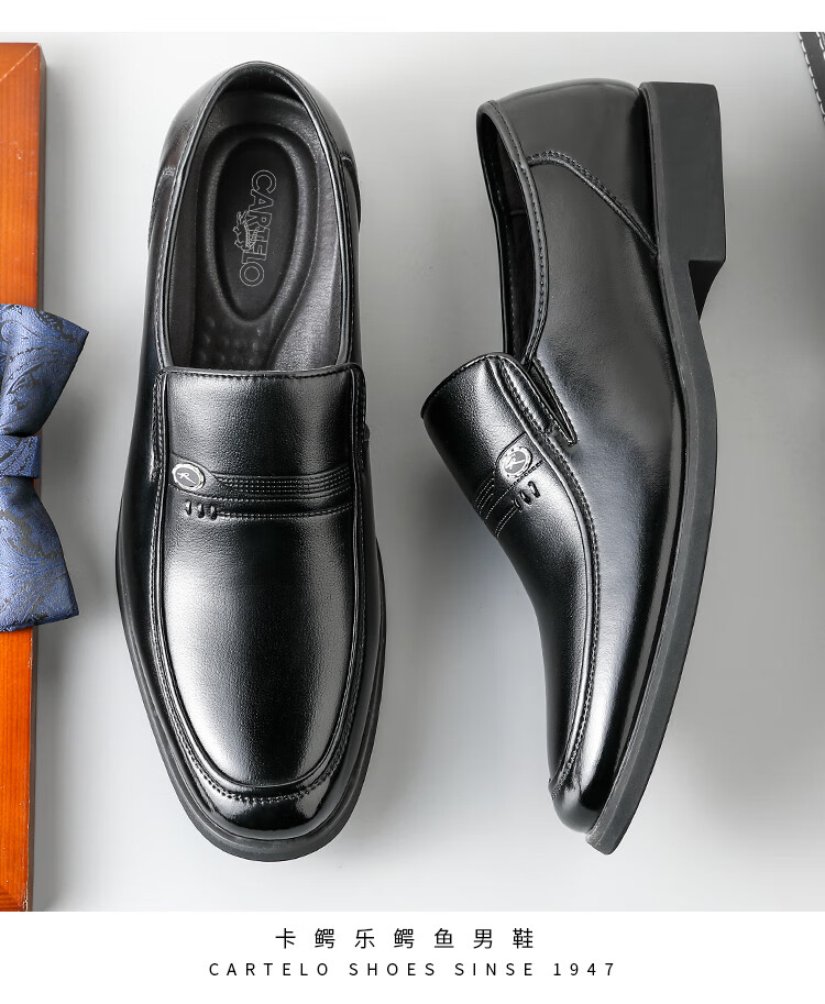 CARTELO crocodile toe-layer cowhide business casual shoes men's round-toe low-top dad shoes leather shoes men 1068 black 41