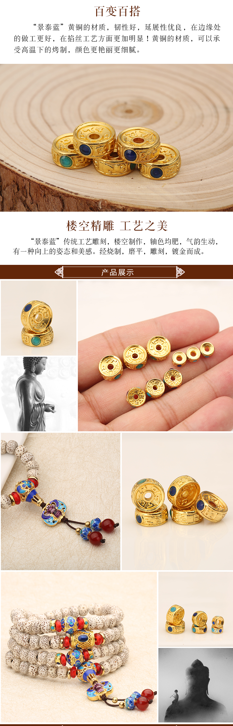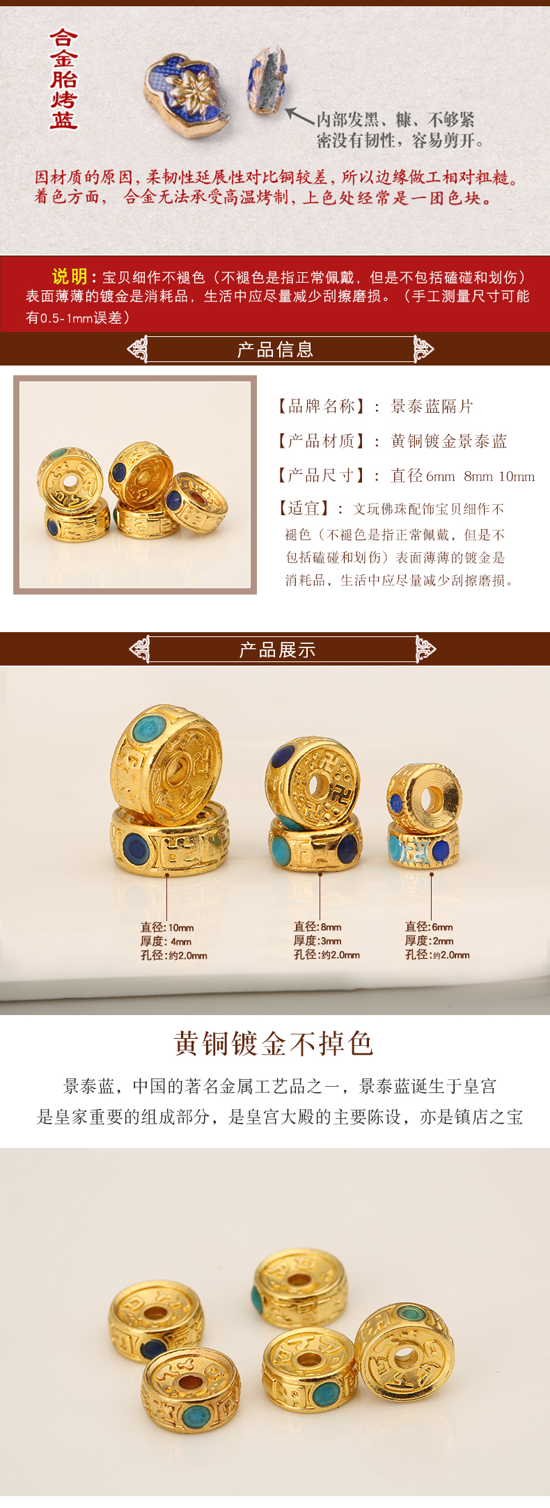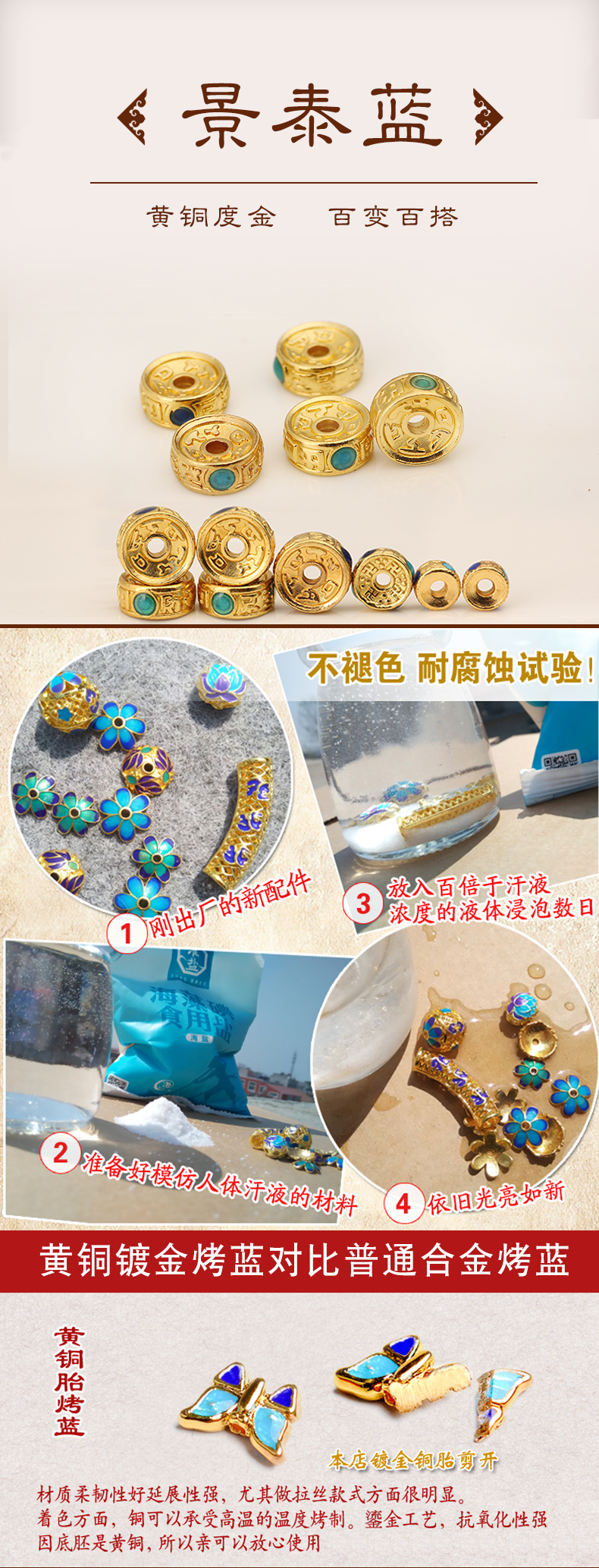 Cloisonné spacer spacer beads brass gold-plated filigree enamel burnt blue handmade toy bracelet bracelet accessories cloisonné spacer diameter 8mm (single)